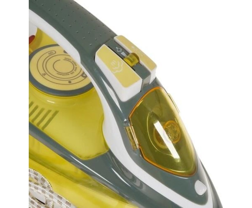 Мощность: 2400 Ватт Емкость для воды 450 мл Регулировка температуры Функция разбрызгивания Паровой удар Вертикальное отпаривание Функция самоочистки от накипи Противокапельная система Керамическое покрытие подошвы Шарнирное вращение шнура на 360 °С Длина сетевого шнура 2 м