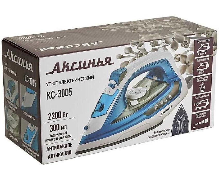 Утюг АКСИНЬЯ КС-3005 белый с синим