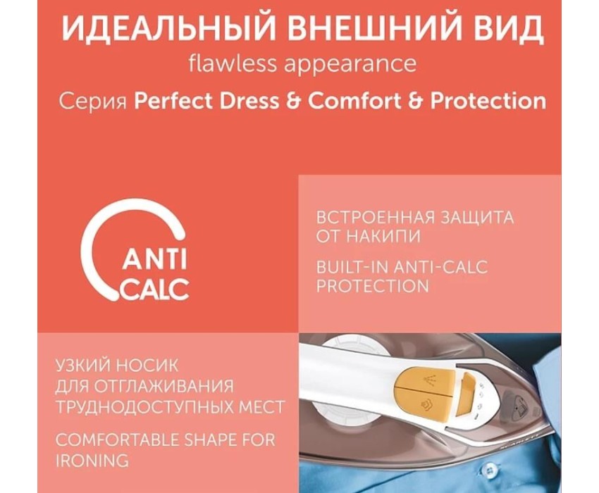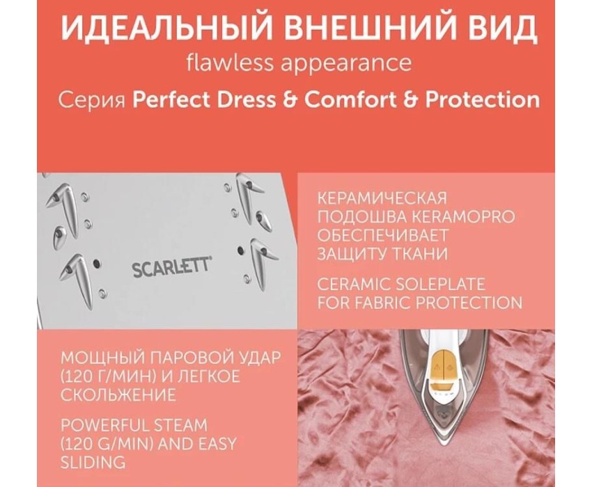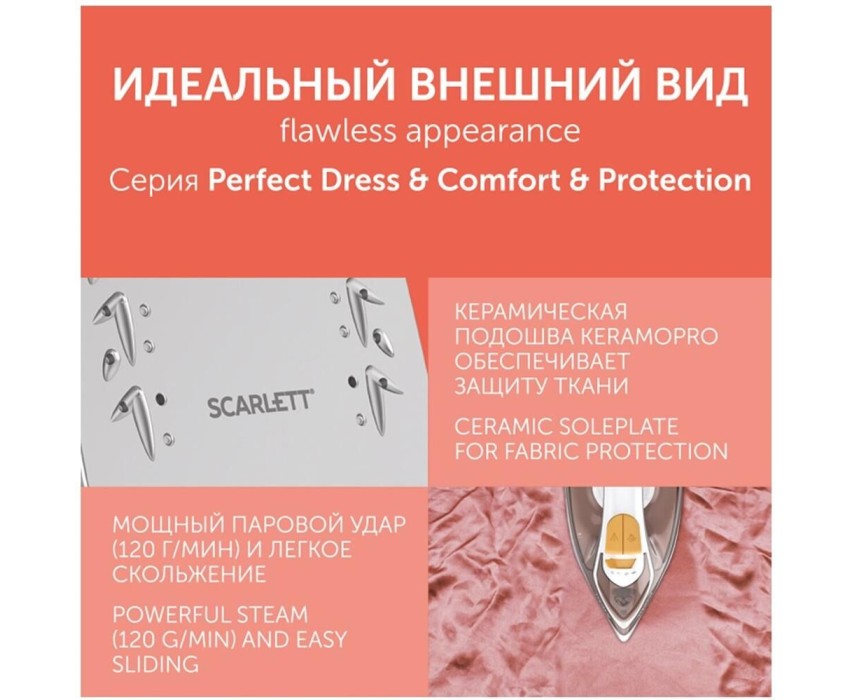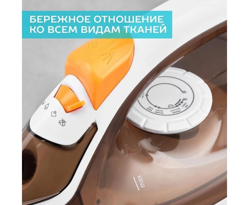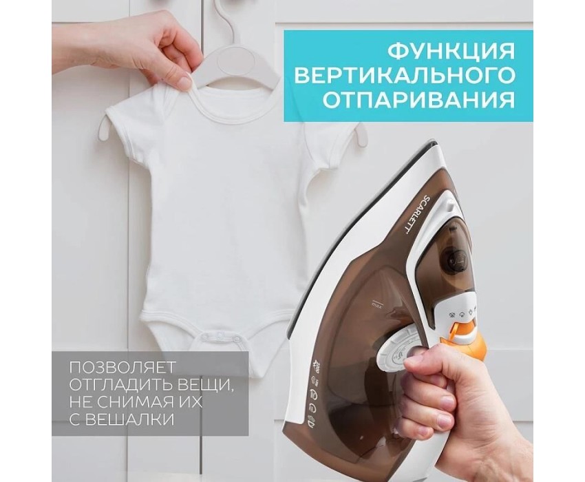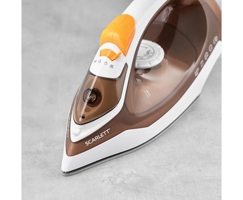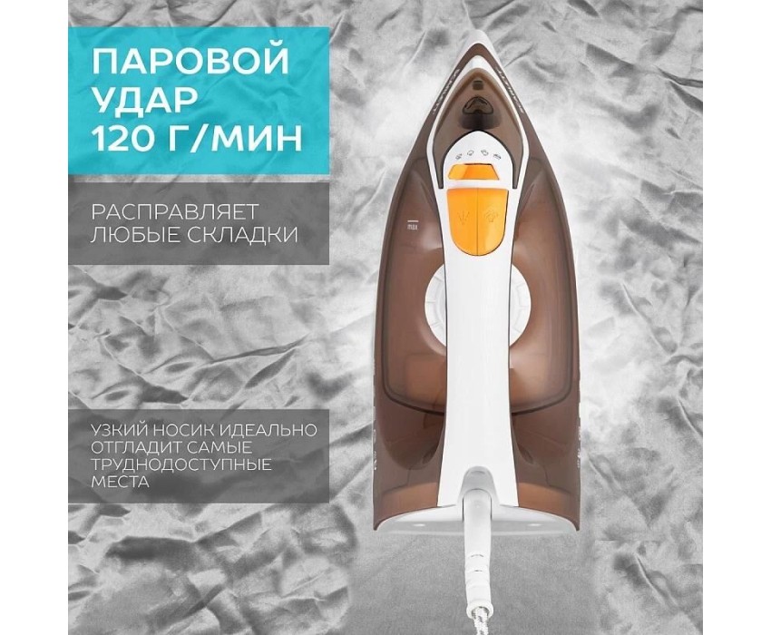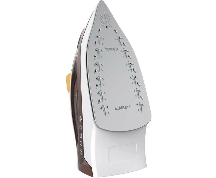Мощность, Вт: 2200 Световой индикатор работы: Да Регулируемый пар до г/мин: 60 Паровой удар до г/мин: 120 Резервуар для воды, мл: 250 Функция разбрызгивания воды: Да Терморегулятор: Да Вертикальное отпаривание: Да Регулировка степени отпаривания: Да Покрытие подошвы: Керамическая подошва KeramoPro Самоочистка: Да Система защиты от накипи ANTI-CALC: Да Размер утюга Ш*В*Г, мм: 280*118*136 Шарнирное крепление шнура: Да Длина электрошнура, м: 1.6 Цвет: Коричневый Утюг Scarlett SC-SI30K47, выполненный в коричневом цвете, оснащён подошвой с керамическим покрытием KeramoPro, которая обеспечивает отличное скольжение и бережное отношение ко всем видам тканей. Максимальная мощность 2200 Вт позволит в считанные минуты справиться даже с тканями со сложной фактурой, а различные температурные режимы помогут выбрать оптимальный для того, чтобы самые деликатные ткани выглядели после глажения идеально. В режиме парового удара создает 120 грамм пара в минуту