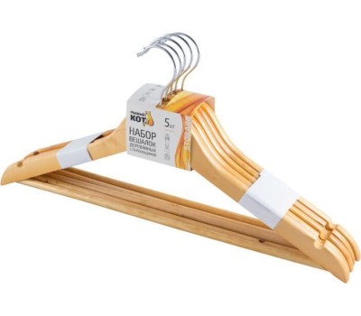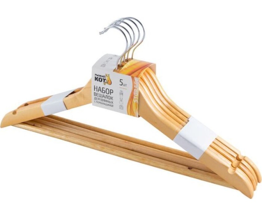 Набор вешалок РЫЖИЙ КОТ Набор вешалок деревянных с перекладиной, 5 шт, лак (007769)