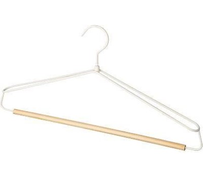 РЫЖИЙ КОТ Вешалка металлическая с деревянной перекладиной Винтаж широкими плечами, цвет белый (107896)