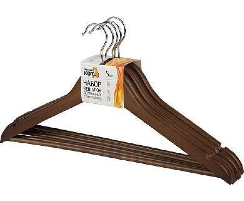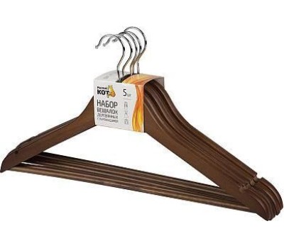 РЫЖИЙ КОТ Набор вешалок деревянных с перекладиной, 5 шт, цвет темно-коричневый (107912)