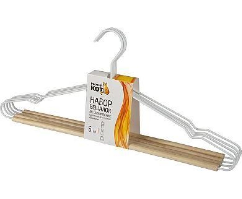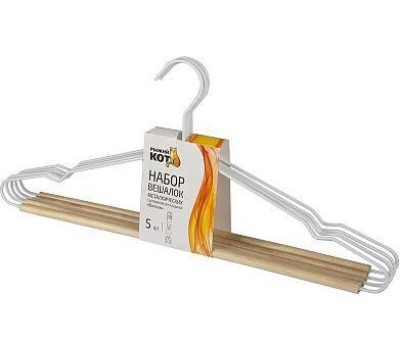 РЫЖИЙ КОТ Набор вешалок металлических с деревянной перекладиной Винтаж, цвет белый, 5 шт (107895)