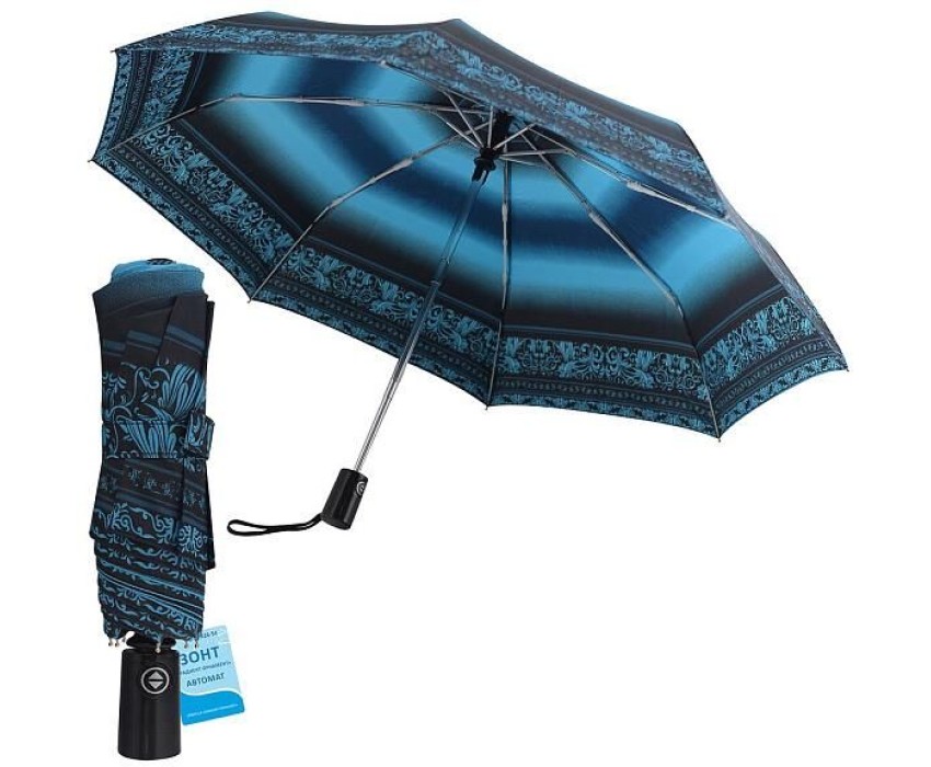 Зонт яркого бирюзового цвета добавит яркости в ваш день. Зонт открывается и закрывается автоматически. Конструкция устойчива к порывам ветра. Купол изготовлен из полиэстера и металла, ручка из пластмассы. Диаметр купола 98 см.