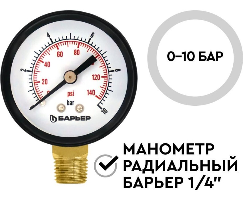 Аксессуар БАРЬЕР О090Р01 Манометр радиальный Барьер 1/4" 0-10 бар