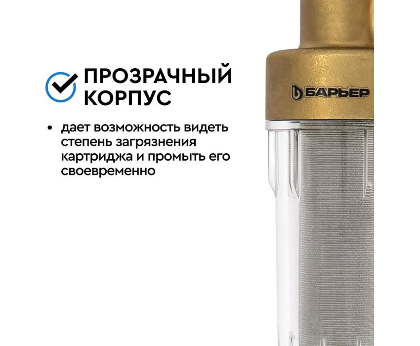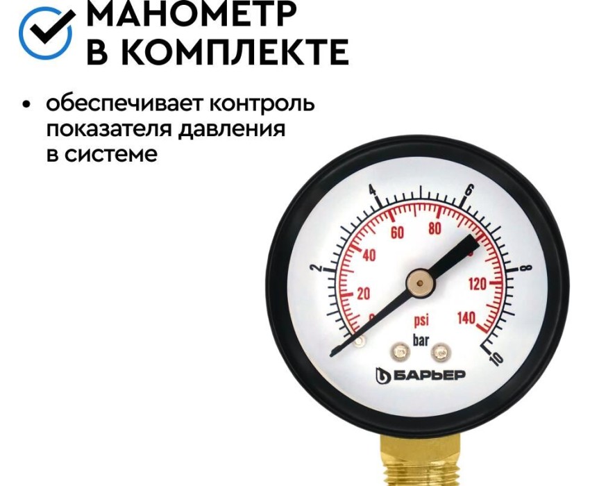 Аксессуар БАРЬЕР О082Р02 Фильтр механической очистки ПРОТЕКТ универсальный 1/2 ХВ с монометром