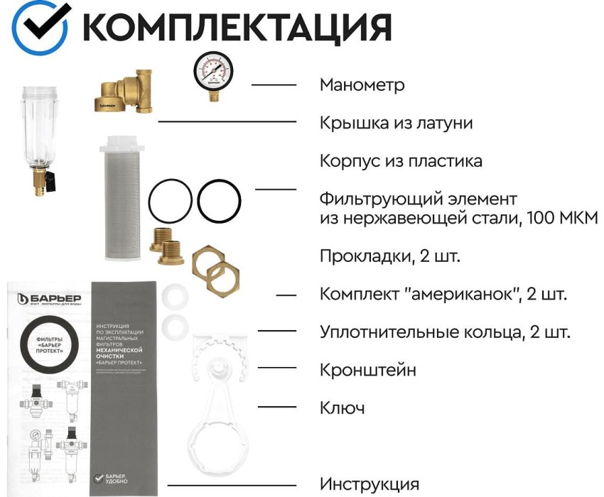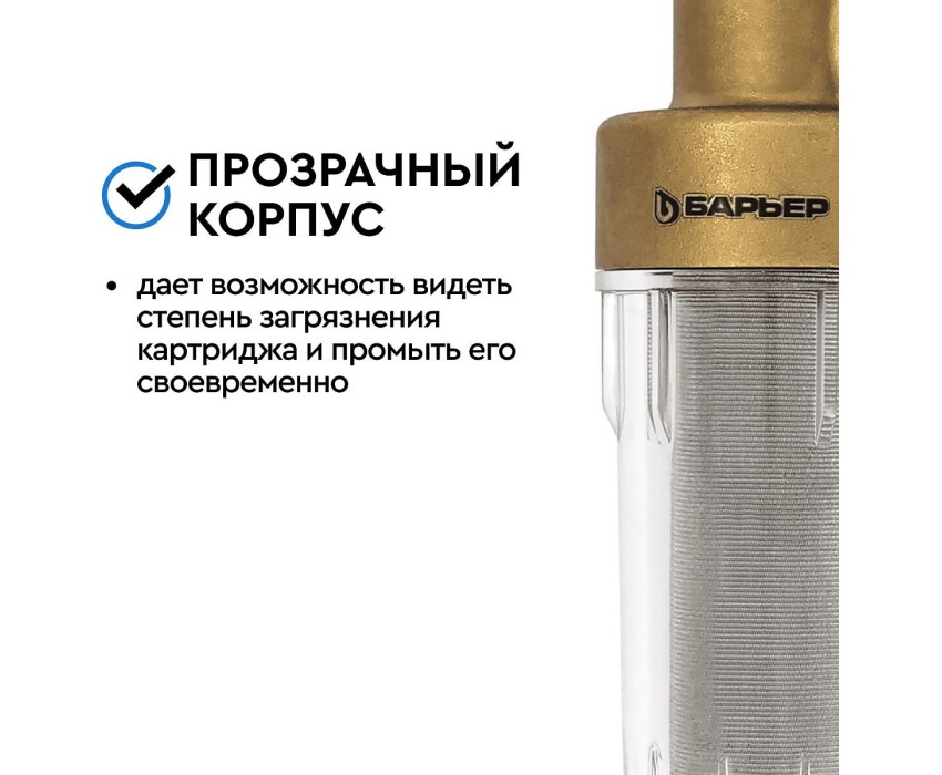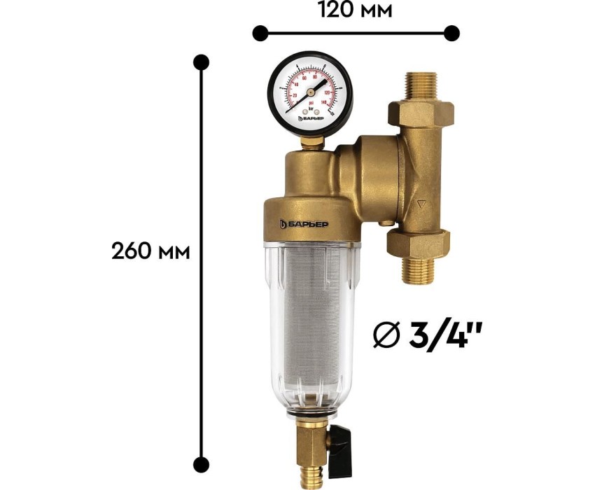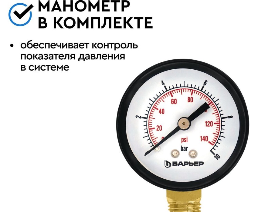 Аксессуар БАРЬЕР О082Р03 Фильтр механической очистки ПРОТЕКТ универсальный 3/4 ХВ с монометром
