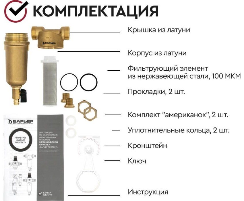 Аксессуар БАРЬЕР О080Р00 Фильтр механической очистки ПРОТЕКТ 1/2 ГВ 100 мкм