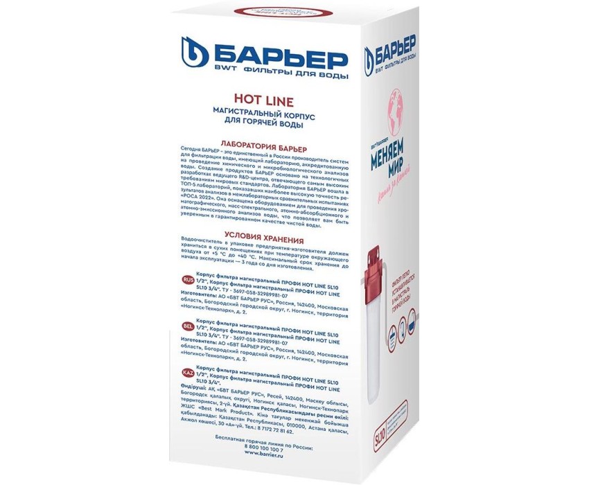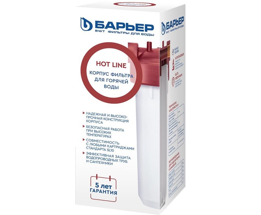 Аксессуар БАРЬЕР Н105Р01 Корпус фильтра магистральный HOT LINE SL10 1/2 для горячей воды (Латунные резьбовые вставки)