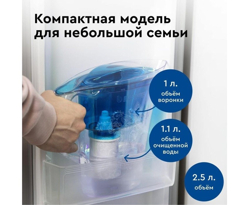 объем отфильтрованной воды: 1.1 л; размещение в дверце холодильника