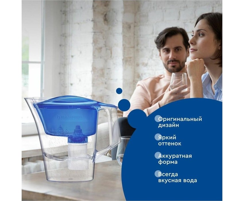 Яркий компактный кувшин с элегантным узором. Не занимает много места на кухне, удобно помещается в дверце холодильника. В комплекте кассета БАРЬЕР Старт. Кассета Старт – экономичная очистка водопроводной воды от хлора и других вредных примесей. Устраняет посторонние привкусы и запахи. Препятствует образованию накипи в чайнике. Одна кассета БАРЬЕР способна заменить несколько сотен пластиковых бутылок. По окончании ресурса кассету можно сдать на переработку.
