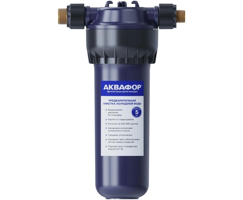 Тип: Корпус. Особенности: предфильтр для х/в (соед.3/4''), металлические штуцеры, подходят все стандартные модули 10SL. Тип очистки воды: сорбционная(проточная) система. Габариты упаковки (ед) ДхШхВ: 0.135x0.135x0.33. Вес упаковки (ед): 0.8. Гарантия: 12 мес.. Рабочее давление: до 6.5атм.. Температура воды: 5-38°С. Размеры (ШxВxГ): 125x385x215 мм. Тип очистки: сорбционная(проточная) система. Температура воды: 5-38°С. Рабочее давление: до 6.5атм