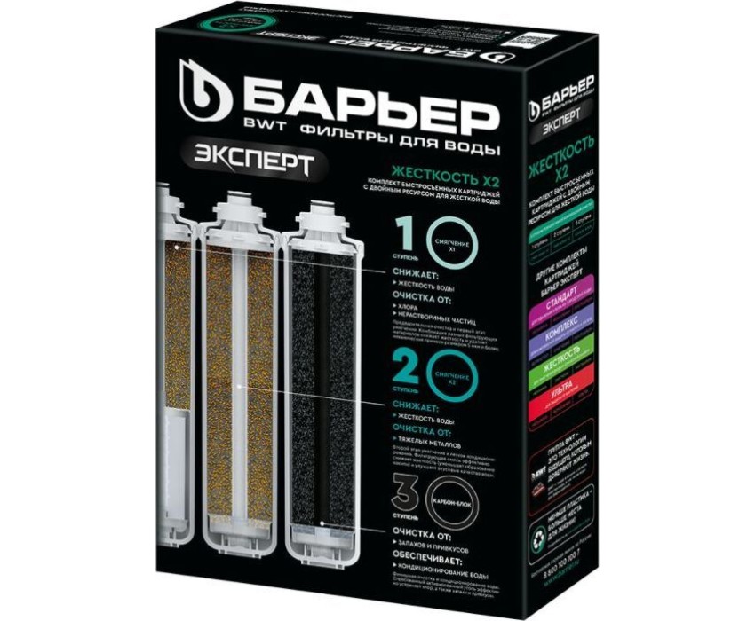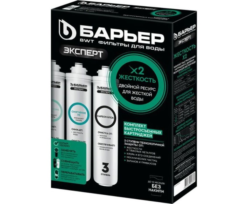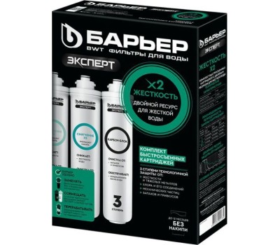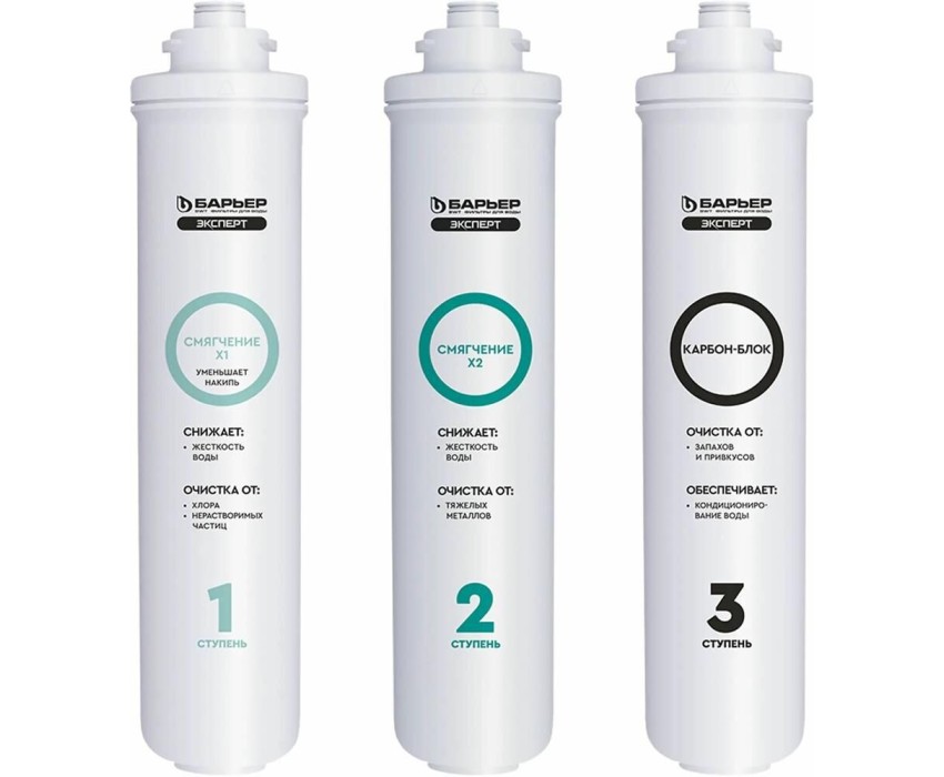 Комплект сменных картриджей способен удалить из состава жесткой воды все присутствующие в ней основные вредные примеси. Уникальная разработка позволяет продлить ресурс вашей системы в 2 раза. Фильтроэлементы необходимо использовать только в системах холодного водоснабжения. Подходит ко всем фильтрам линейки БАРЬЕР Эксперт. Подходит для ЭКСПЕРТ Жесткость х2