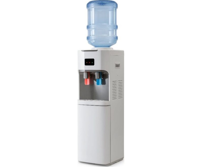 Кулер с нагревом и компрессорным охлаждением. С холодильником. Верхняя загрузка бутыли. Краники нажим кружкой. Производительность: нагрева 5.5 л/ч (87-90°C) охлаждения 2 л/ч (2-10°C) Мощность нагрева 650 Вт Мощность охлаждения 100 Вт. Гарантия 2 года. Цвет: белый с графитовой вставкой.