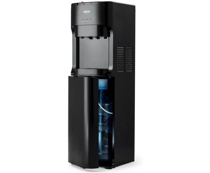 Классический кулер с нижней загрузкой бутыли. Цвет корпуса черный. Боковые панели металлические. Три крана, управление разливом воды при помощи трёх кнопок (горячая, холодная и вода комнатной температуры). Баки горячей и холодной воды из нержавеющей стали. Кран горячей воды имеет "защиту от детей". Электронное охлаждение и нагрев. Бутыль внутри. Мощность нагрева, 650 Вт. Мощность охлаждения, 70 Вт. Производительность нагрева воды, 6.0 Литр/Час. Производительность охлаждения воды, 0.6 Литр/Час. Бак горячей воды, 1.1 Литр. Бак холодной воды, 0.6 Литр. Количество пользователей 20. Гарантия 2 года.