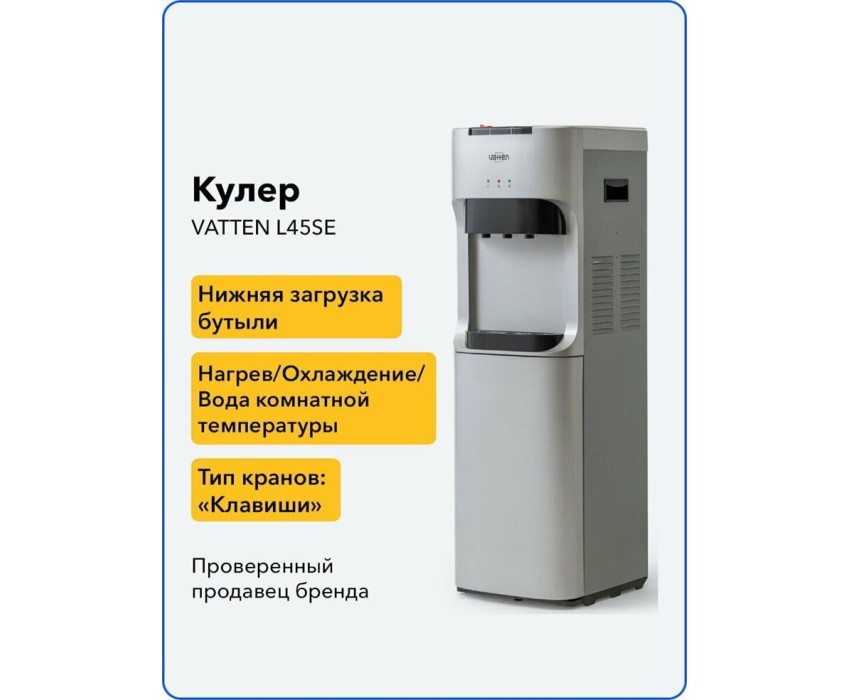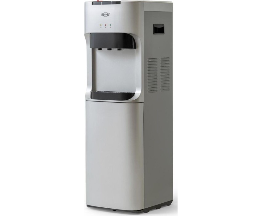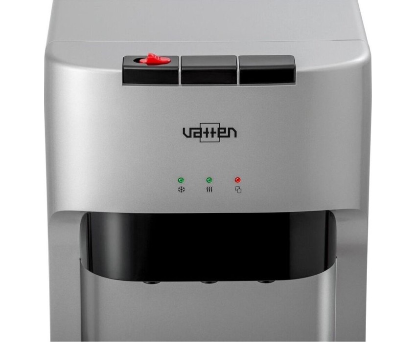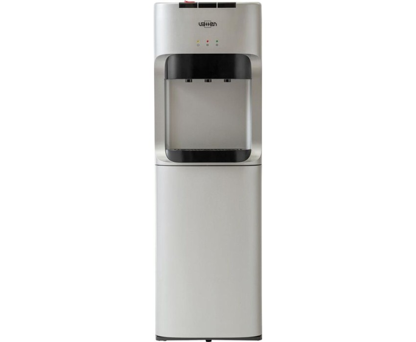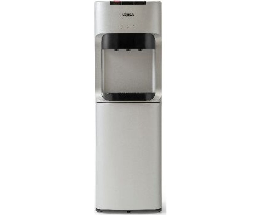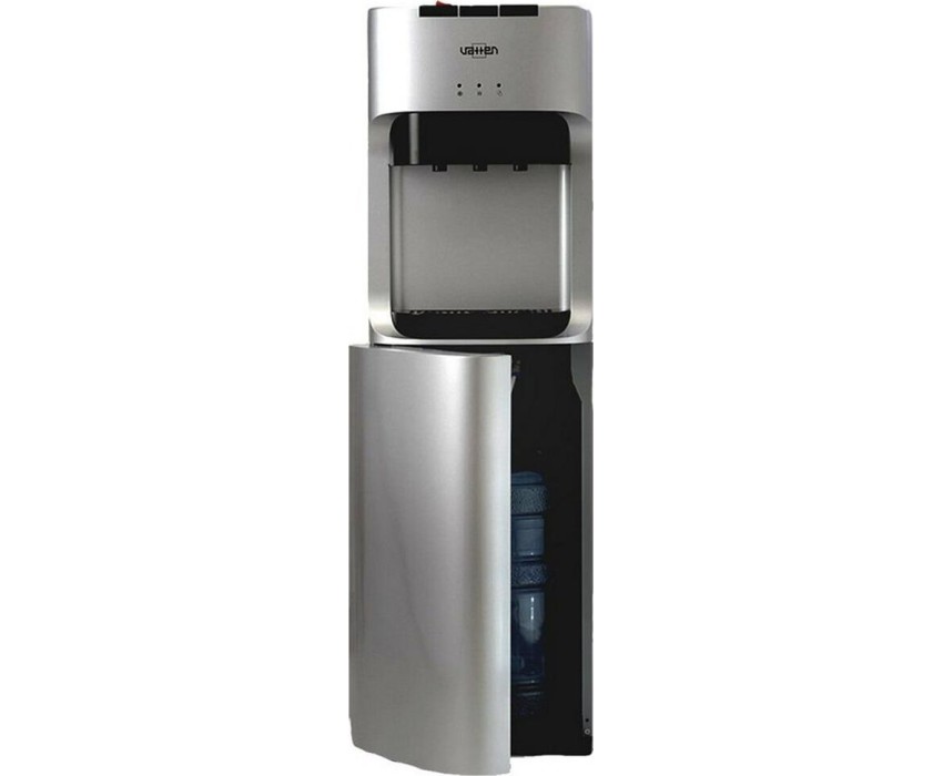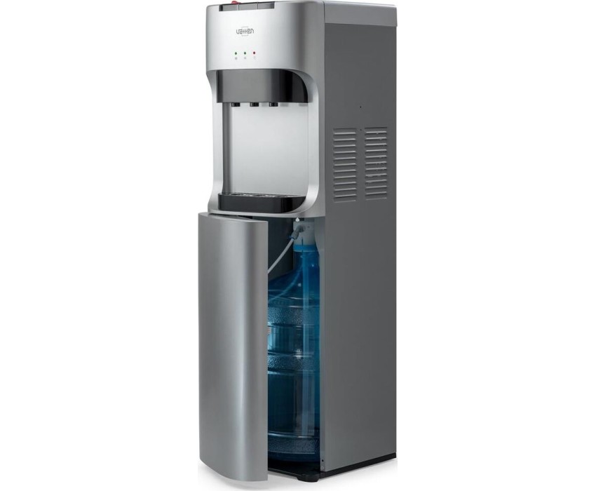 Классический кулер с нижней загрузкой бутыли. Цвет корпуса серебристый. Боковые панели металлические. Три крана, управление разливом воды при помощи трёх кнопок (горячая, холодная и вода комнатной температуры). Баки горячей и холодной воды из нержавеющей стали. Кран горячей воды имеет "защиту от детей". Электронное охлаждение и нагрев. Бутыль внутри. Мощность нагрева, 650 Вт. Мощность охлаждения, 70 Вт. Производительность нагрева воды, 6.0 Литр/Час. Производительность охлаждения воды, 0.6 Литр/Час. Бак горячей воды, 1.1 Литр. Бак холодной воды, 0.6 Литр. Количество пользователей 20. Гарантия 2 года.