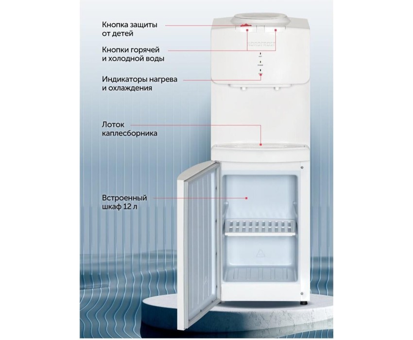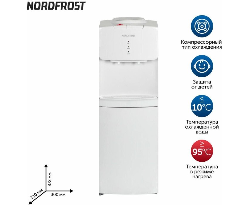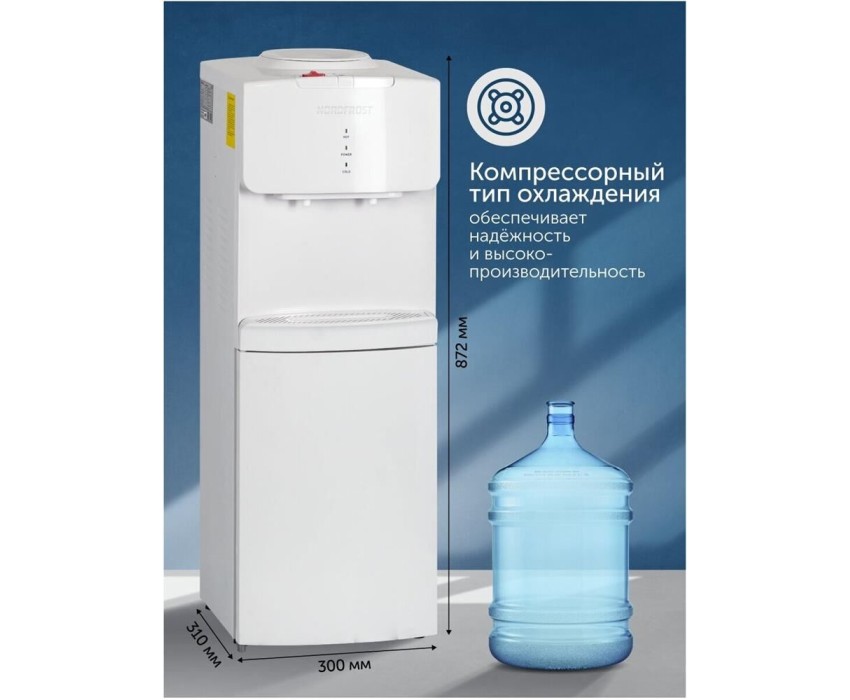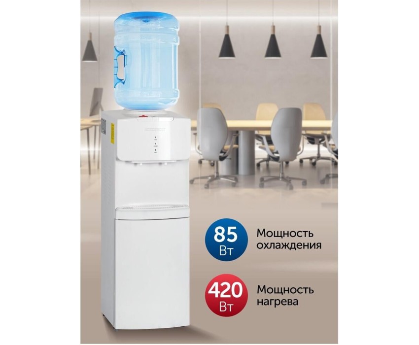 Напольный; Охлаждение Компрессорное; Мощность нагрева (Вт) 420; Мощность охлаждения (Вт) 85; Загрузка бутыли Верхнее; ШхГхВ 30х31х87,2; Цвет Белый;
