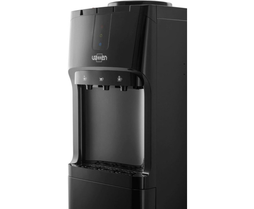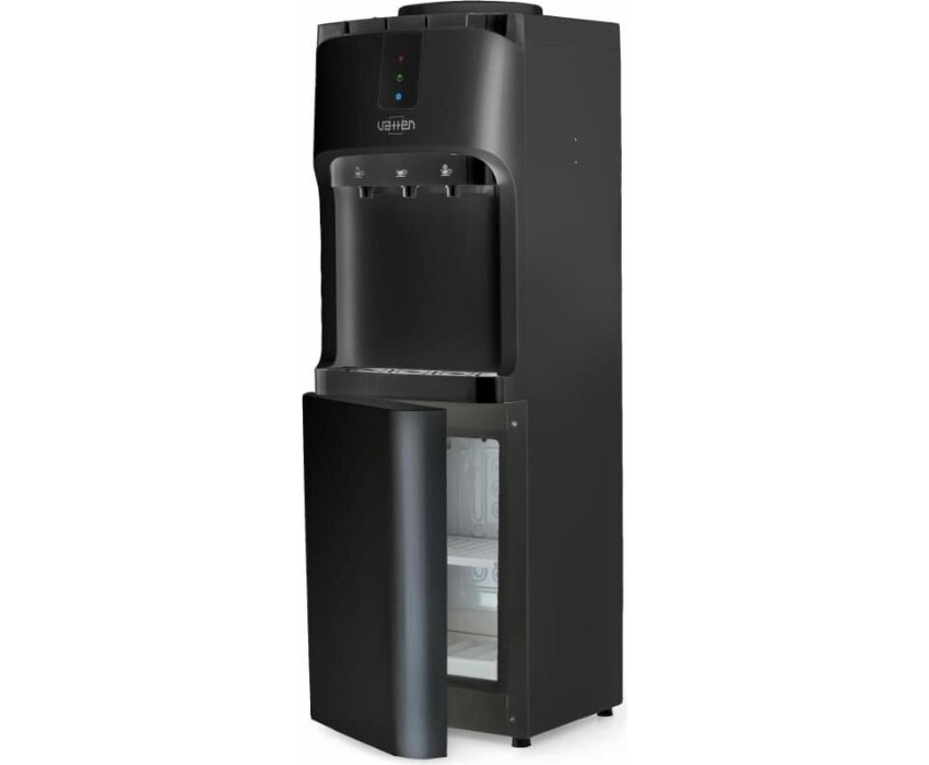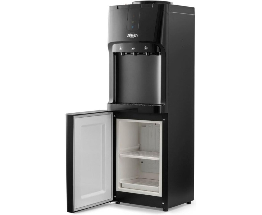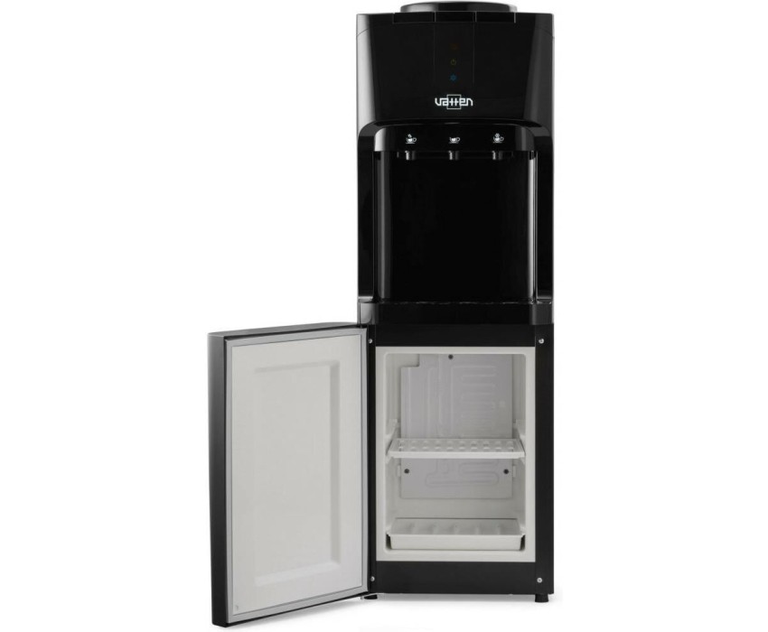 Устройство подает воду горячей, холодной и комнатной температуры. Три LED индикатора (включение питания, нагрев и охлаждение). Наличие компрессора позволяет охлаждать воду до 5 градусов Цельсия. Оснащен холодильной камерой (минибаром) на 12 литров - в ней можно хранить бутерброды и напитки. Имеет блокиратор клавиши горячей воды («защита от детей»).