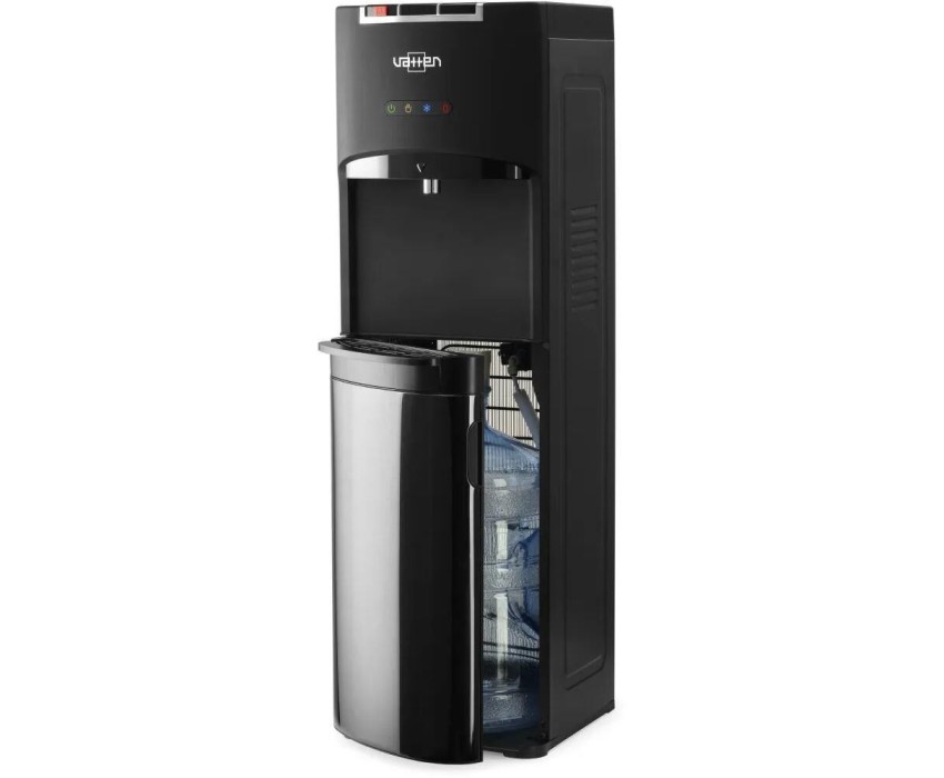 Напольный кулер с нижней загрузкой и компрессорным охлаждением. Один сенсорный кран. Мощность нагрева 800 Вт (9 л/ч), охлаждения 90 Вт (2 л/ч). Баки: горячей 1.7 л, холодной 3.2 л. Защита от детей, индикатор пустой бутылки. Для 20 пользователей. Цвет черный. Размеры: 305x1035x345 мм.