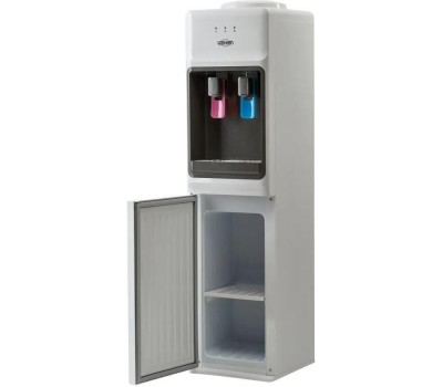 Напольный кулер с верхней загрузкой и электронным охлаждением. Два крана ("push"). Мощность нагрева 800 Вт (5 л/ч), охлаждения 80 Вт (0.6 л/ч). Баки: горячей 1 л, холодной 0.6 л. Встроенный шкафчик (14 л). Цвет белый.
