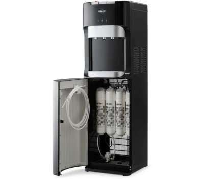 Напольный пурифайер с компрессорным охлаждением. Защита от детей. Три кнопочных крана. Вода комнатной температуры. Мощность нагрева 800 Вт (8 л/ч). Мощность охлаждения 100 Вт (2 л/ч). Цвет черный. Бак горячей воды, л 1. Бак холодной воды, л 3.6. Количество пользователей 20. Защита от протечек. Гарантия 1 год.