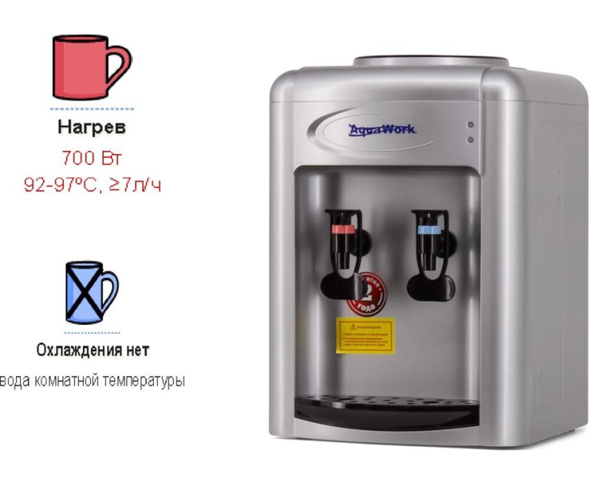 AQUA WORK Кулер 0.7-TKR, настольный, "push" - кран, серебристый [00000024765]