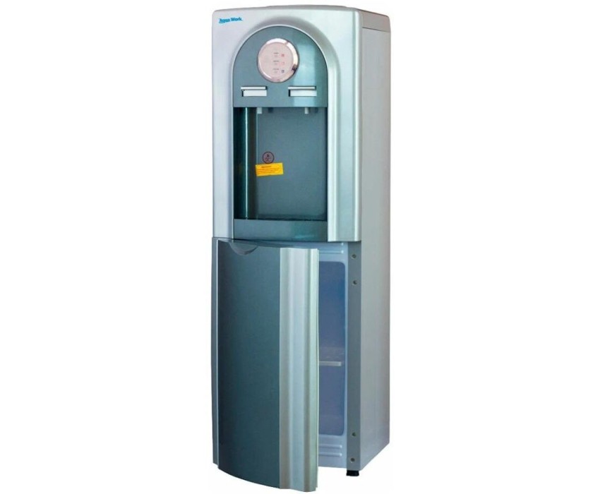 Напольный кулер для питьевой воды Aqua Work 5-VB с нагревом, электронной системой охлаждения и небольшим встроенным шкафчиком. Технические данные: Нагрев воды Мощность: 550 Вт Нагревает: ≥ 95 °С, не менее 5л/ч Охлаждение: электронное Мощность: 75 Вт Охлаждает: ≤ 15 °С, не менее 0,7л/ч Подача воды: нажатием на кнопки Краников: 2 Место в корпусе: шкафчик, емкостью 12 литров Установка бутыли: сверху Индикация работы: светодиоды Управление: тумблеры вкл/выкл Стаканодержатели: на шурупах, на магнитах Габариты аппарата: 96x31x31 cм Вес: 8 кг