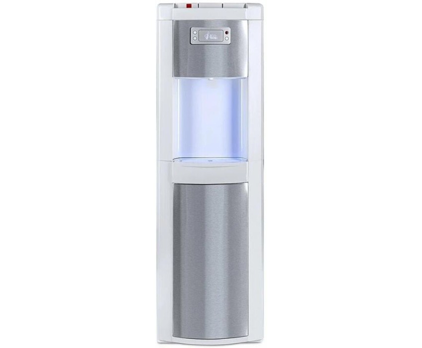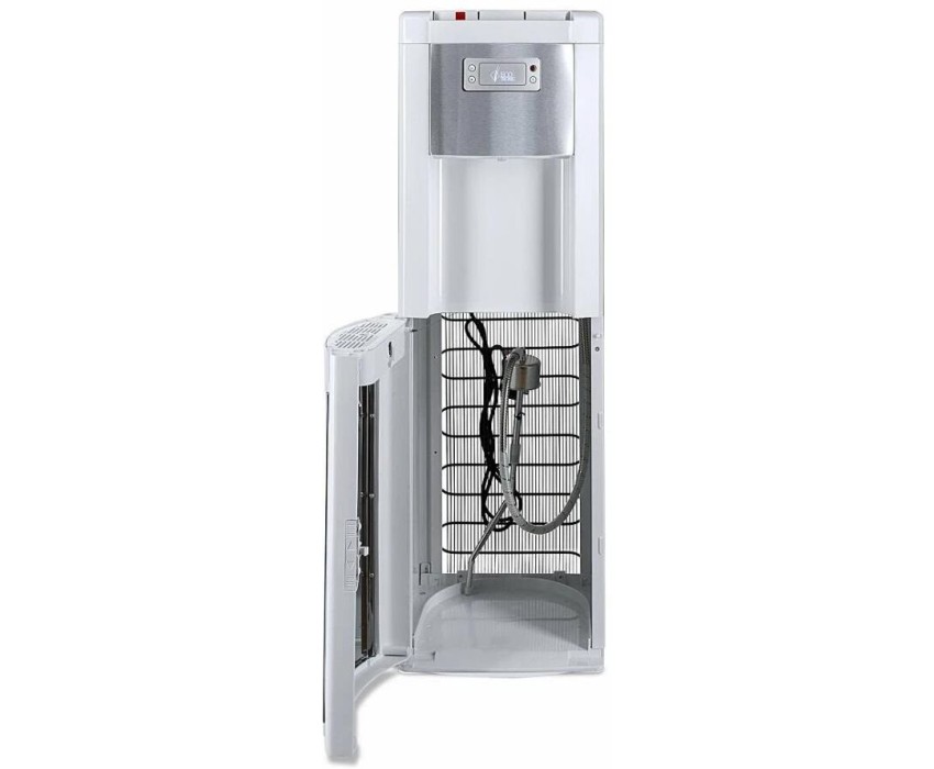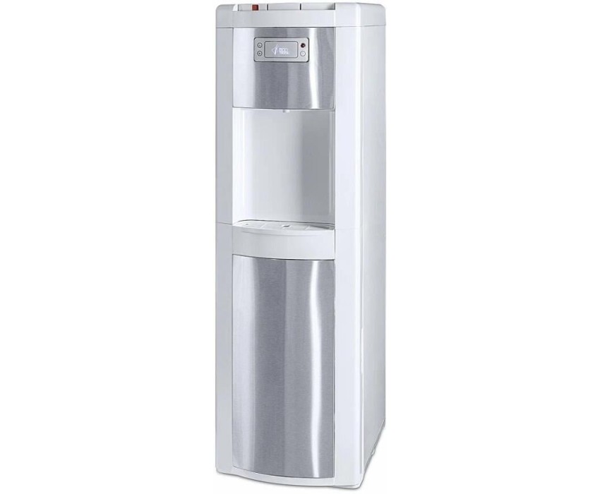 Ecotronic P9-LX белый со вставкой с нержавеющей сталью – кулер с нижней загрузкой бутыли. Специальная изогнутая, регулируемая по длине заборная трубка позволяет производить забор воды из бутыли без остатка. Три крана подачи воды: горячая, прохладная и холодная. Лоток со встроенным поплавком, сигнализирующим о заполнении. Закачка воды в систему кулера происходит с помощью водной помпы. Выкатная полка отсутствует. Панель индикации с функцией управления нагревом. Кран горячей воды с опциональной защитой от детей: чтобы ее подключить, свяжитесь с сервисным центром. Технические характеристики: Тип установки: напольный Типоразмер напольного кулера: стандартный Загрузка бутыли: снизу Тип охлаждения: компрессорный Тип кранов: клавиши (нажим сверху) Цвет корпуса: белый Цвет лицевых панелей: нержавеющая сталь Нижняя загрузка бутыли Наличие 3-го крана: есть Защита на кран горячей воды: без защиты Нагрев: 5 л/ч (≤ 94 C°) Охлаждение: 1 л/ч (≥ 5 C°) Бак горячей воды: ≥ 1,2 л, разборный Бак холодной воды: 3,6 л, (нерж. сталь) Нагревательный элемент: внутренний Мощность нагрева: ≥ 500 Вт Мощность охлаждения: ~ 90 Вт Напряжение: 220-230В / 50-60 Гц Габариты без упаковки (ВxШxГ): 1040x320x355 мм Габариты в упаковке (ВxШxГ): 1090x370x400 мм