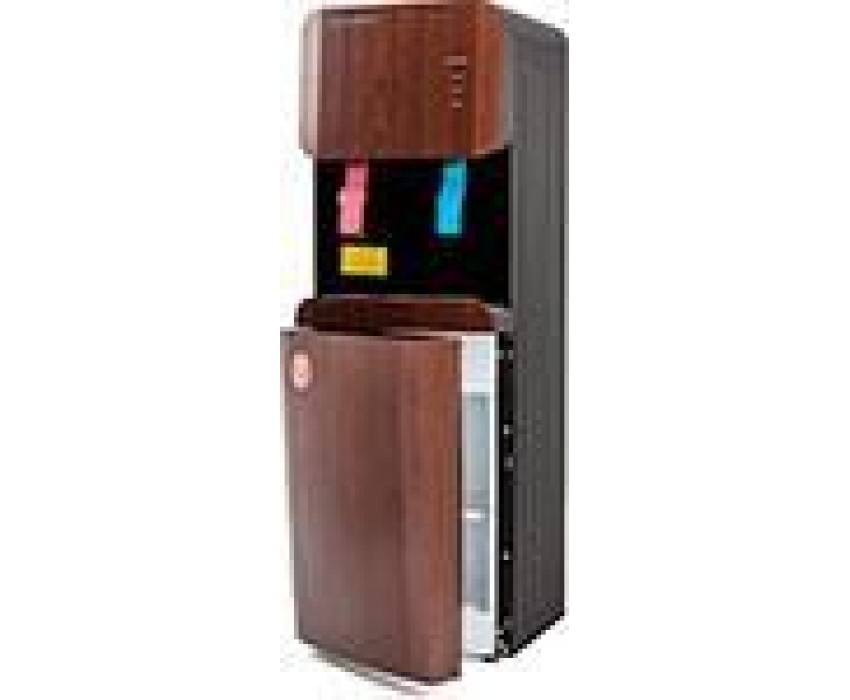 Кулер для воды Aqua Work 105 LDR: Напольный кулер для воды Aqua Work 105-LDR с нагревом, электронным охлаждением и небольшим встроенным шкафчиком объемом ~13 литров. Используемая в этом аппарате технологичная электронная система способна охлаждать воду на 12-14 градусов от температуры помещения Особенности: Нагрева 700 Вт - до 7 литров воды в течение 1 часа Охлаждение - до 1 литра прохладной воды в час 2 краника типа "нажим кружкой" с удлиненными лапками Кнопка для включения принудительного нагрева Внизу - шкафчик (32 х 21 х 19 см) Стальные "боковины" рассчитаны на крепеж стаканодержателей на магните Эту модель можно переделать для подключения к водопроводу Основные характеристики: Тип: кулер Размещение: напольный Управление: тумблеры вкл/выкл Напряжение: 220-240 В / 50 Гц Нагрев: да Мощность: 700 Вт Нагревает: 90 °С, не менее 7л/ч Охлаждение: электронное Мощность: 70 Вт Охлаждает: 15 °С, не менее 0.7-1л/ч Подача воды: нажатием кружкой Краников: 2 Стаканодержатели: на магнитах В корпусе: шкафчик, объемом 13 л Установка бутыли: сверху Индикация работы: светодиоды Габариты: 308х340х960 мм Вес: 7.98 кг Цвет: черный/венге