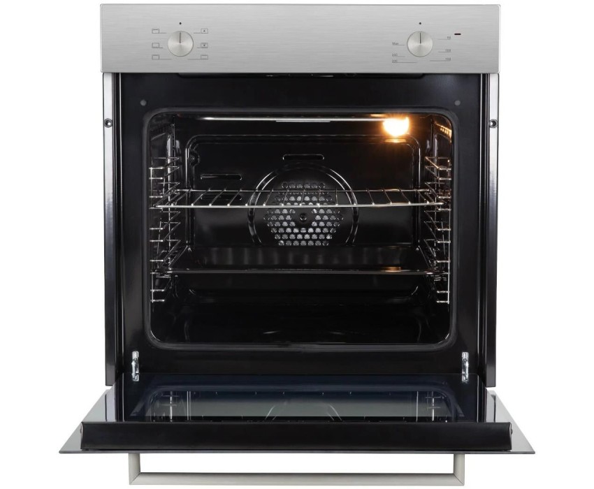 Духовой шкаф (электрический). Цвет: Серебро, Цвет фурнитуры: чёрный + нержавеющая сталь, Материал фасада: нержавеющая сталь + закаленное стекло, Класс энергопотребления: A, Управление: поворотные переключатели, Объем: 72 литра, Количество функций: 6, Функции: гриль, верхний нагрев, нижний нагрев, верхний и нижний нагрев, верхний и нижний нагрев с конвекцией, Мощность: 1700 Вт, МАХ температура нагрева: 260°С, Стекла дверцы: двойное съемное стекло LOW-E, Панорамное внутреннее стекло Smart Eye, Холодный фронт, Очистка духовки: эмаль Easy Clean, Тангенциальное охлаждение, Хромированные боковые направляющие, Уровней установки противня: 5, Решетка, Противень: глубокий, Габариты (ШхГхВ): 595*543*595 мм, Ниша для встраивания (ШхГхВ): 560*550*600 мм, Длина шнура: 1300 мм, Вес нетто: 29,3 кг, Вес брутто: 31,9 кг, Срок службы до 10 лет.
