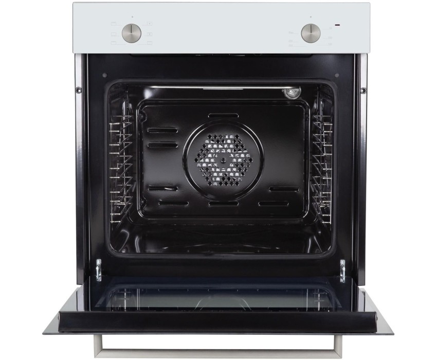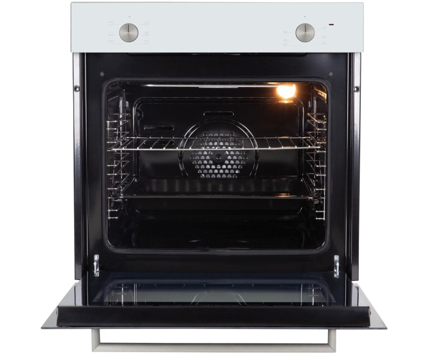 Духовой шкаф (электрический). Цвет: Белый, Цвет фурнитуры: белый + нержавеющая сталь, Материал фасада: закаленное стекло, Класс энергопотребления: A, Управление: поворотные переключатели, Объем: 72 литра, Количество функций: 6, Функции: гриль, верхний нагрев, нижний нагрев, верхний и нижний нагрев, верхний и нижний нагрев с конвекцией, Мощность: 1700 Вт, МАХ температура нагрева: 260°С, Стекла дверцы: двойное съемное стекло LOW-E, Панорамное внутреннее стекло Smart Eye, Холодный фронт, Очистка духовки: эмаль Easy Clean, Тангенциальное охлаждение, Хромированные боковые направляющие, Уровней установки противня: 5, Решетка, Противень: глубокий, Габариты (ШхГхВ): 595*543*595 мм, Ниша для встраивания (ШхГхВ): 560*550*600 мм, Длина шнура: 1300 мм, Вес нетто: 29,3 кг, Вес брутто: 31,9 кг, Срок службы до 10 лет.