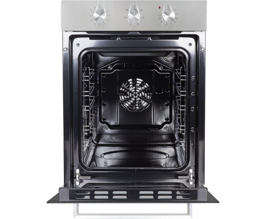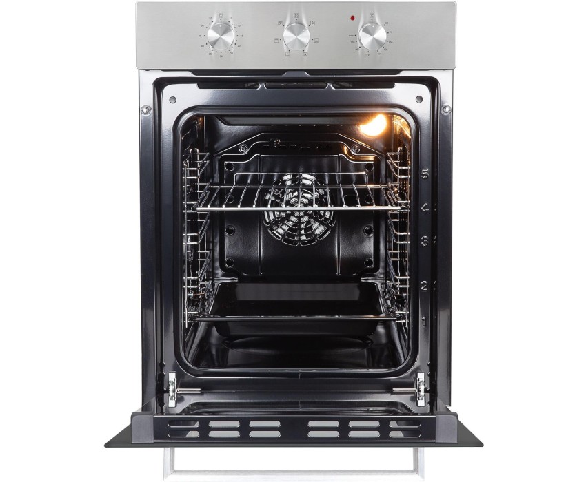 Духовой шкаф (электрический). Цвет: Серебро, Цвет фурнитуры: нержавеющая сталь, Материал фасада: закаленное стекло, Класс энергопотребления: A, Управление: поворотные переключатели, Объем: 51 литра, Количество функций: 6, Функции гриль, гриль с конвекцией, нижний нагрев, верхний и нижний нагрев, верхний и нижний нагрев с конвекцией, подсветка. Мощность: 2200 Вт, МАХ температура нагрева: 250°С, Стекла дверцы: двойное съемное стекло, Панорамное внутреннее стекло Smart Eye, Холодный фронт, Очистка духовки: эмаль Easy Clean, Тангенциальное охлаждение, Хромированные боковые направляющие, Уровней установки противня: 5, Решетка, Противень: стандартный, Габариты (ШхГхВ): 445*600*600 мм, Ниша для встраивания (ШхГхВ): 410*550*589 мм, Длина шнура: 1230 мм, Вес нетто: 23 кг, Вес брутто: 26 кг, Срок службы до 10 лет