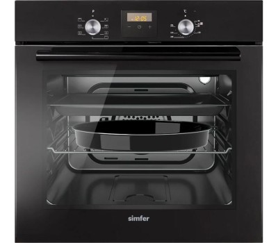 ВСТРАИВАЕМАЯ ЭЛЕКТРИЧЕСКАЯ ДУХОВКА • Класс энергоэффективности А • Объем камеры духовки: 58л. • Мультифункциональная духовка • Количество режимов работы: 6 • Электрический термостат • Цифровой таймер, часы • Управление: поворотные переключатели • Очистка
