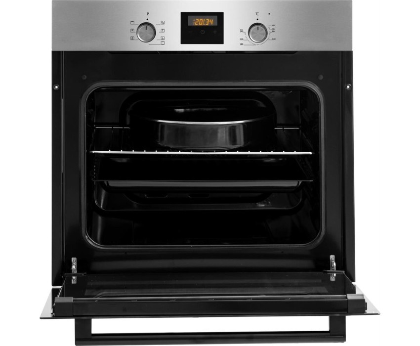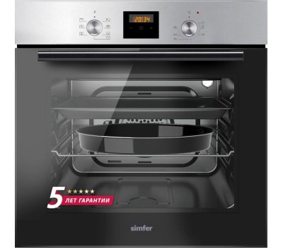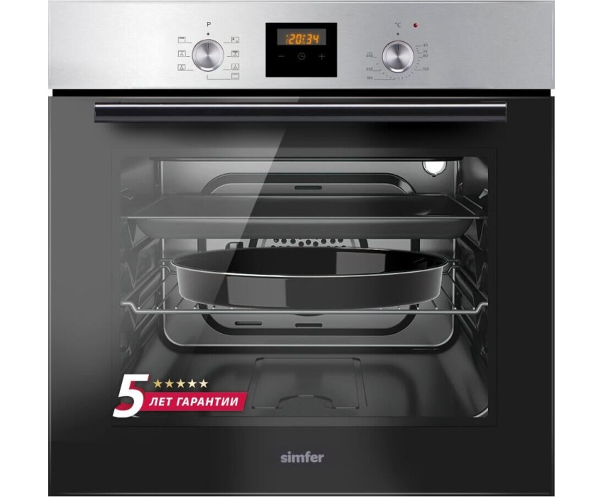 ВСТРАИВАЕМАЯ ЭЛЕКТРИЧЕСКАЯ ДУХОВКА • Класс энергоэффективности А • Объем камеры духовки: 58л. • Мультифункциональная духовка • Количество режимов работы: 7 • Электрический термостат • Цифровой таймер, часы • Управление: поворотные переключатели • Очистка камеры духовки– эмаль лёгкой очистки чёрного цвета, паровая очистка • Количество стёкол дверцы: 2 • Внутреннее съёмное стекло лёгкой очистки • Фронтальное освещение духовки • Рельефные направляющие • Комплектация: стандартный противень с антипригарным покрытием, хромированная решётка Материал панели управления: нержавеющая сталь с окраской Цвет прибора: Нержавеющая сталь Цвет ручки: чёрный Цвет переключателей: чёрный Габаритные размеры (ВхШхГ), мм: 595х595х610