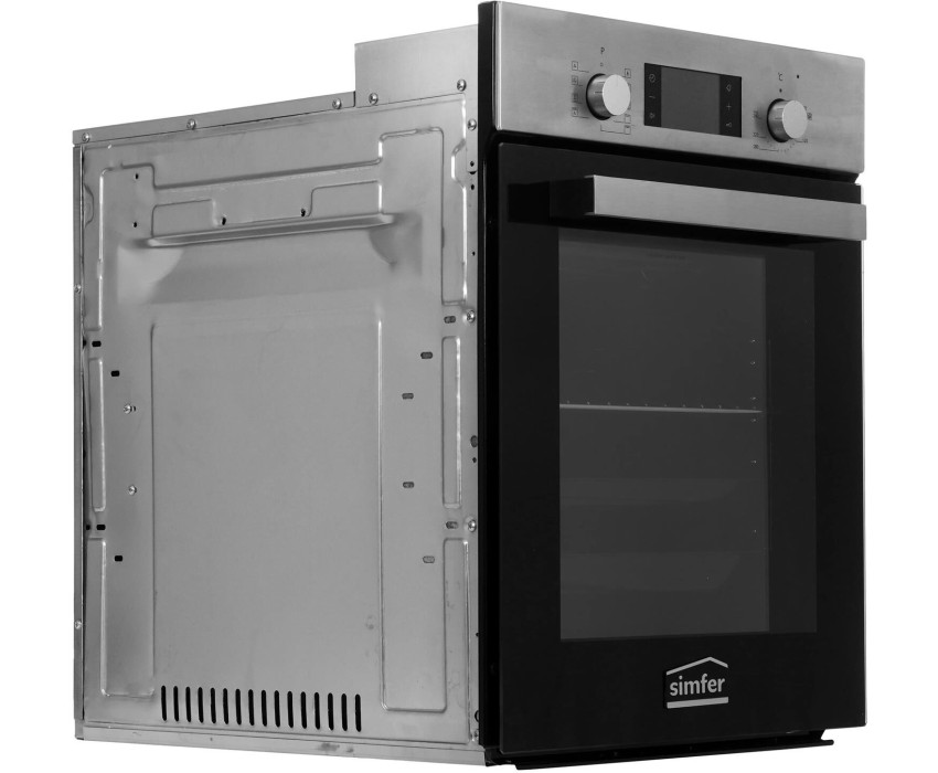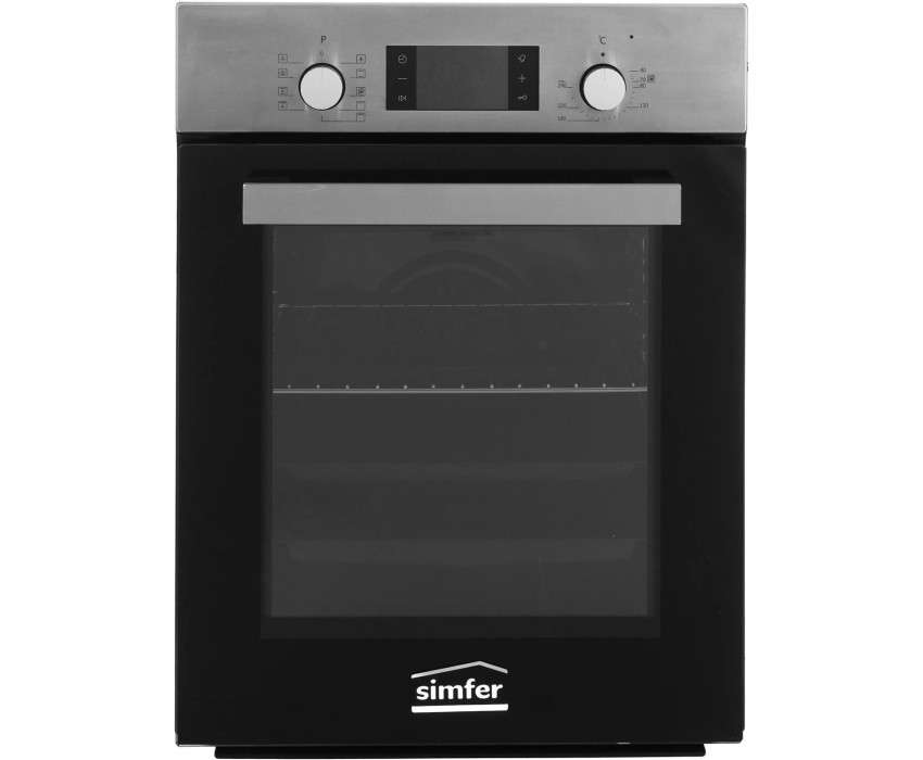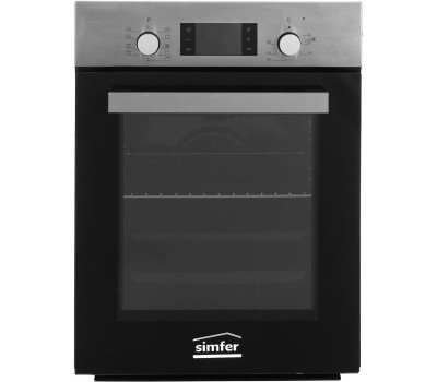 ВСТРАИВАЕМАЯ ЭЛЕКТРИЧЕСКАЯ ДУХОВКА • Класс энергоэффективности А • Объем камеры духовки: 49л. • Количество режимов работы: 9 •Сенсорный таймер 6 кнопочный с автоотключением • Электрический термостат • Управление: утапливаемые переключатели • Очистка камеры духовки: эмаль лёгкой очистки чёрного цвета, паровая очистка • Количество стёкол дверцы: 2, внутреннее стекло с напылением Low-е • Внутреннее съёмное стекло лёгкой очистки • Фронтальное освещение духовки • Хромированные направляющие • Комплектация: стандартный противень с антипригарным покрытием, хромированная решётка, глубокий противень. Материал панели управления: нержавеющая сталь Цвет прибора: нержавеющая сталь Цвет переключателей: серебристый