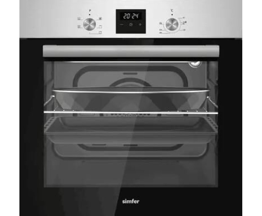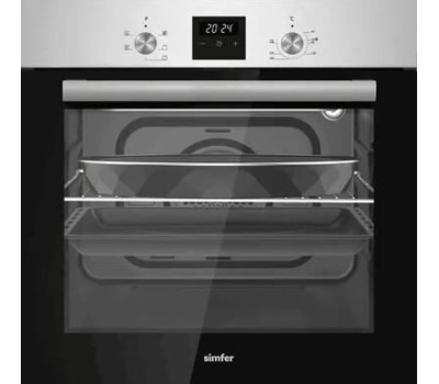 ВСТРАИВАЕМАЯ ЭЛЕКТРИЧЕСКАЯ ДУХОВКА • Класс энергоэффективности А • Объем камеры духовки: 60л. • Мультифункциональная духовка • Количество режимов работы: 5 • Электрический термостат • Цифровой 3 кнопочный программатор с автоотключением,часы (белый) • Управление: утапливаемые переключатели pop up • Очистка камеры духовки– эмаль лёгкой очистки чёрного цвета, паровая очистка • Количество стёкол дверцы: 2, внутреннее стекло с напылением Low-е • Внутреннее съёмное стекло лёгкой очистки • Фронтальное освещение духовки • Рельефные направляющие • Комплектация: стандартный противень с антипригарным покрытием, хромированная решётка, круглый противень Diamond Материал панели управления: нержавеющая сталь Цвет прибора: нержавеющая сталь Цвет переключателей: серебристый