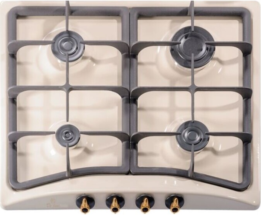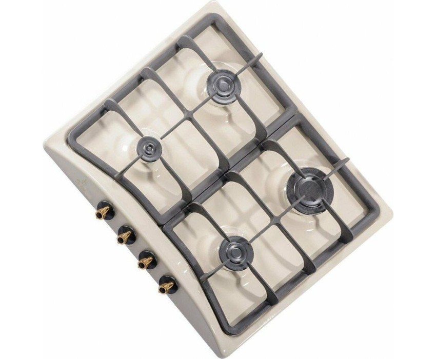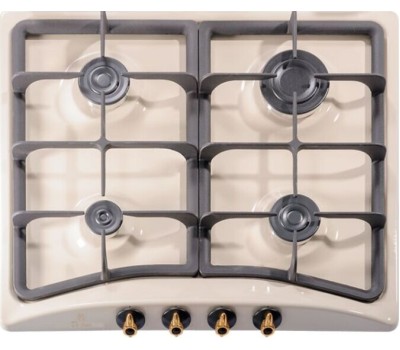 Газовая 4-х конфорочная, газ-контроль, электро.розжиг в ручке, эмаль цвета "топлен.молоко", ручки "блестящее золото", чугунные решетки, размер продукта 58x50x8,6см