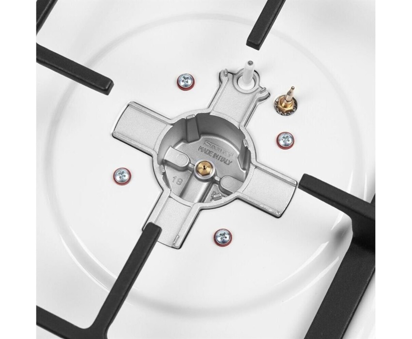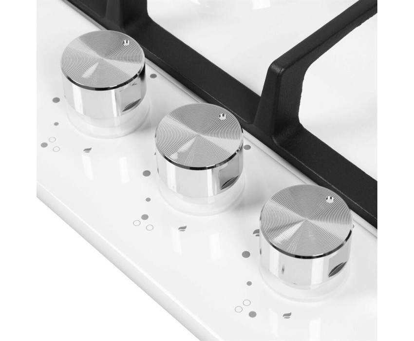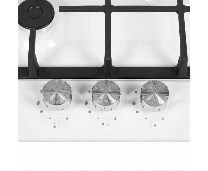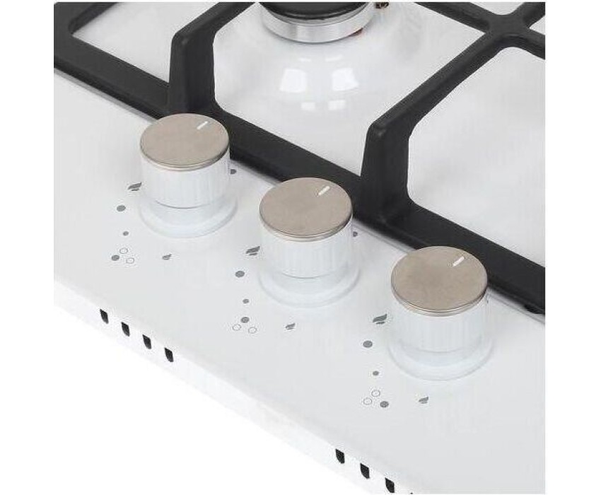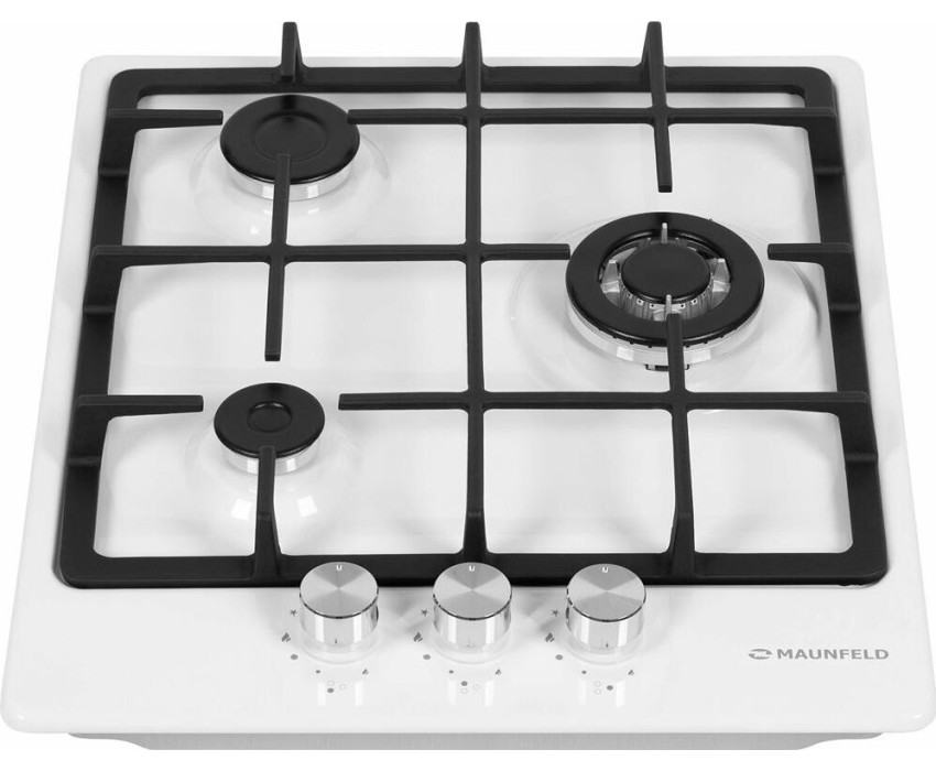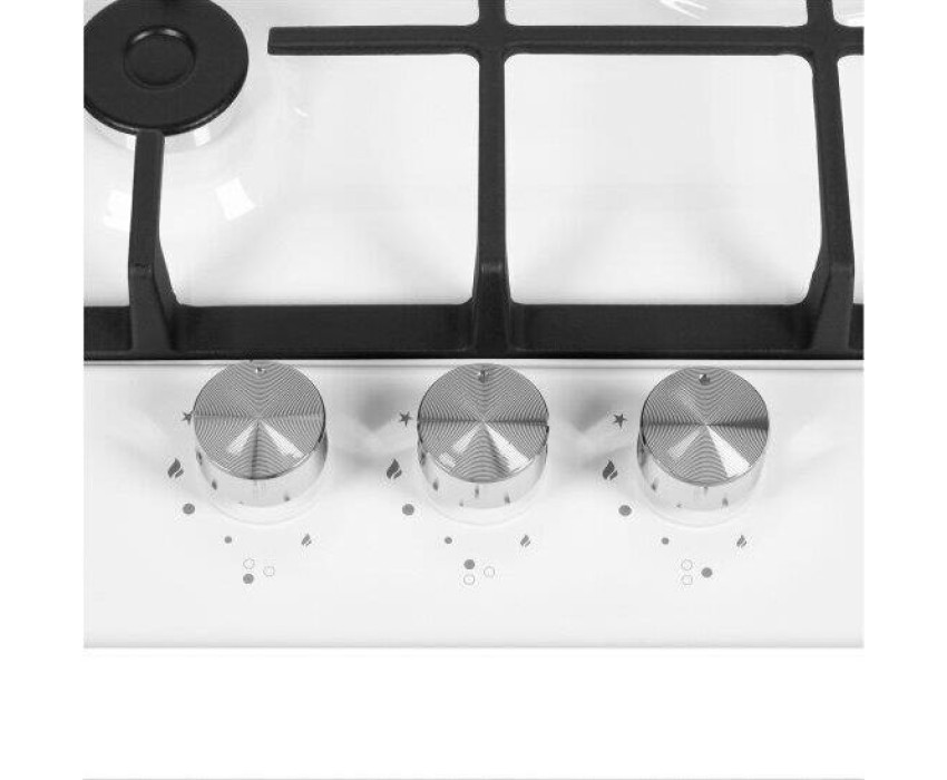 Газовая варочная панель. Количество конфорок 3. Материал поверхности металл с эмалью. Дизайн (коллекция) Модерн. Цвет белый. Цвет фурнитуры серебристый. Решетки чугунные. Габариты В/Ш/Г 5,1/45/51/см. Габариты ниши для встраивания (Ш х Г), 41*48см. Тип управления механическое. Элементы управления поворотные. Особенности элементов управления цельнометаллические полнотелые ручки. Электроподжиг автоматический. Газ-контроль. Использование газа: баллонный газ (тип G30), магистральный. Жиклеры для баллонного газа в комплекте.