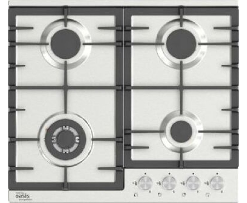 Размеры 58х51,5х8,9см.Металл, нержавеющая сталь, чугунная решетка, автоматический розжиг, газ-контроль, 4 газовые горелки, WOK-конфорка, ширина варочной поверзности 60 см, Турция