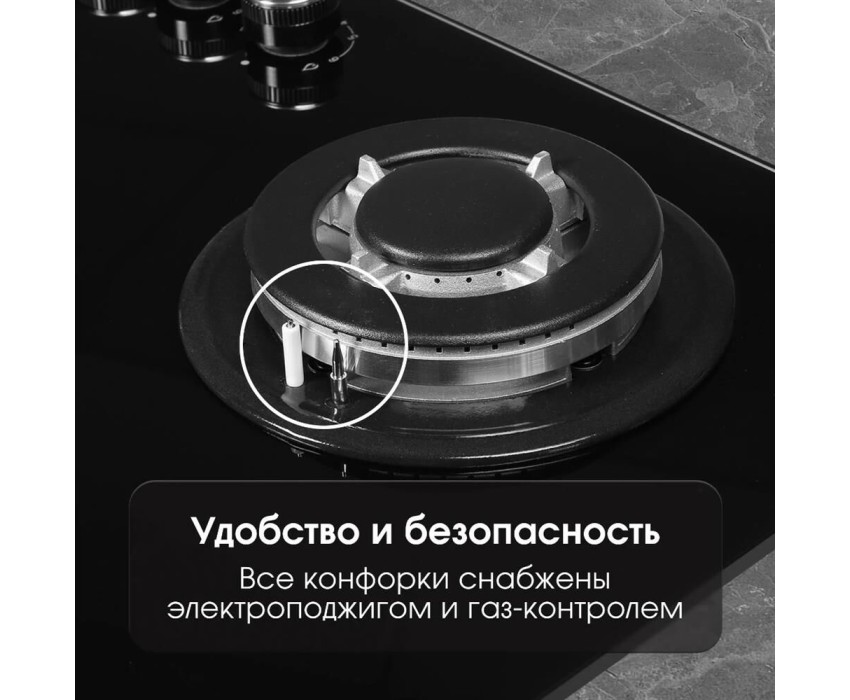 Тип панели газ на стекле Ширина, см 60 Цвет черный Количество конфорок 4 Управление фронтальное Переключатели поворотные Материал поверхности закаленное стекло Решетки чугунные Тройное кольцо пламени есть Мощность горелок, Вт 900; 1880; 2400; 3400 Газ-контроль есть Электроподжиг в каждой ручке Матовые колпачки горелок есть Переходники для разных типов газа есть Размеры, см 60,4х51 Размеры для встраивания (ВхШхГ), см 55,2х47 Гарантия 3+2 Страна производства Китай Линейка Style