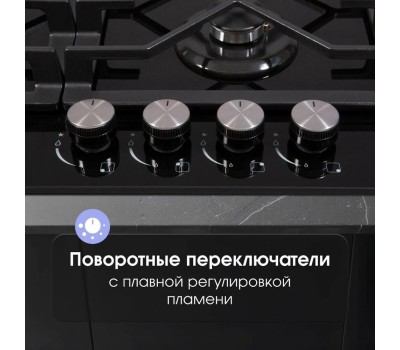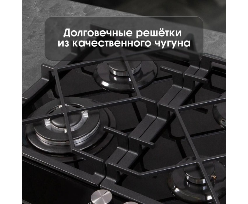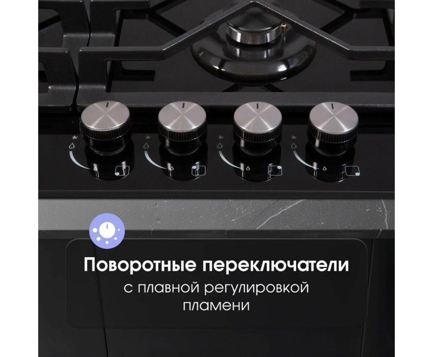 Тип панели газ на стекле Ширина, см 60 Цвет черный Количество конфорок 4 Управление фронтальное Переключатели поворотные Материал поверхности закаленное стекло Решетки чугунные Тройное кольцо пламени есть Мощность горелок, Вт 900; 1800; 1800; 3400 Газ-контроль есть Электроподжиг в каждой ручке Матовые колпачки горелок есть Переходники для разных типов газа есть Размеры, см 58,4х51 Размеры для встраивания (ВхШхГ), см 55,2х47 Гарантия 3+2 Страна производства Китай Линейка Style