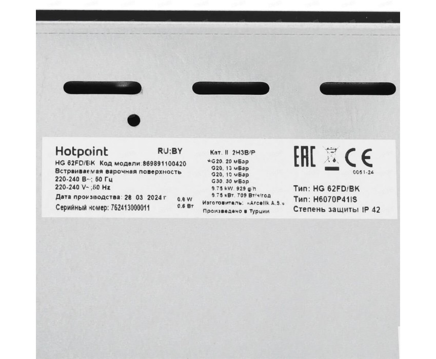 Газовая варочная поверхность HOTPOINT HG 62FD/BK