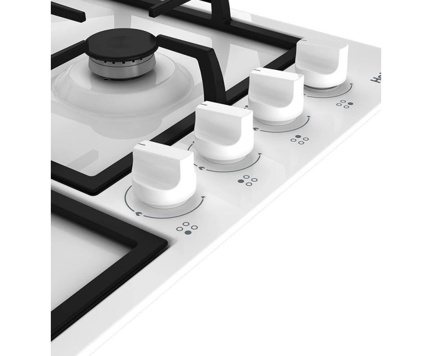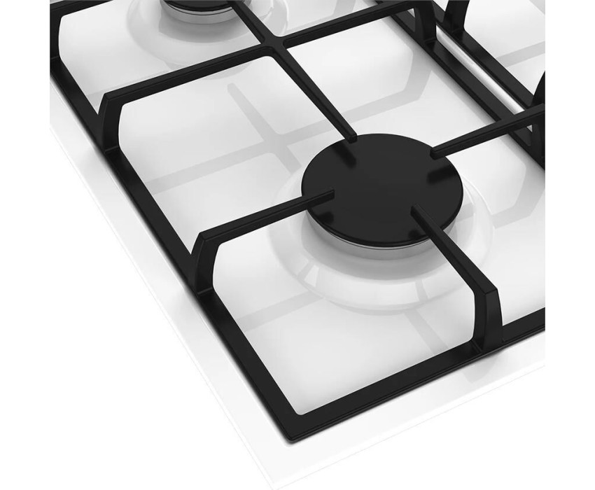 Газовая варочная поверхность (газ на металле) 4 зоны, одна зона с двойным уровнем пламени, автоподжиг, газ-контроль, чугунные решетки, цвет: белый, 72х15х61