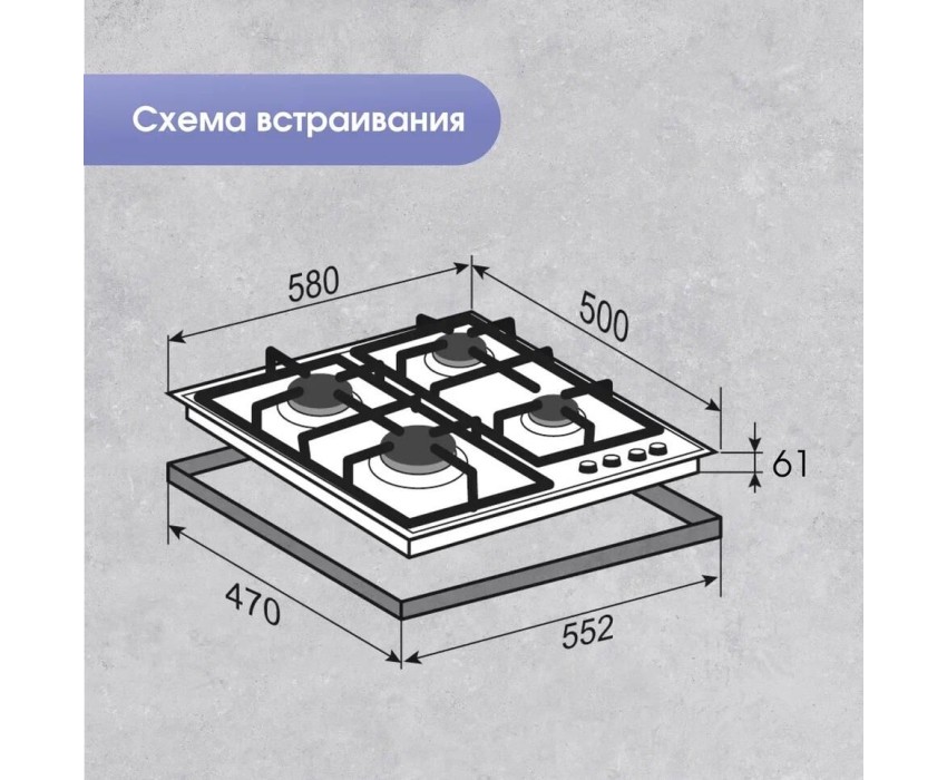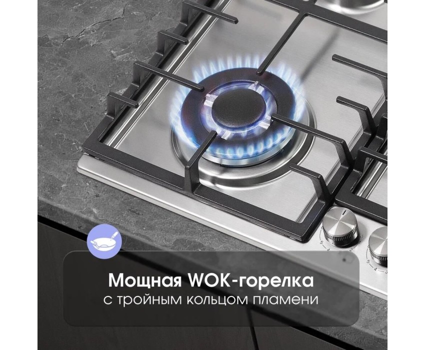 Общие параметры: Мощность горелок: • 1 горелка – 3400 Вт (WOK) • 2 горелки – 1880 Вт • 1 горелка – 900 Вт • Общая мощность – 8060 Вт • WOK-конфорка с тройным контуром пламени • Ступенчатая регулировка пламени • Электроподжиг на каждой конфорке • Газ-контроль на каждой конфорке