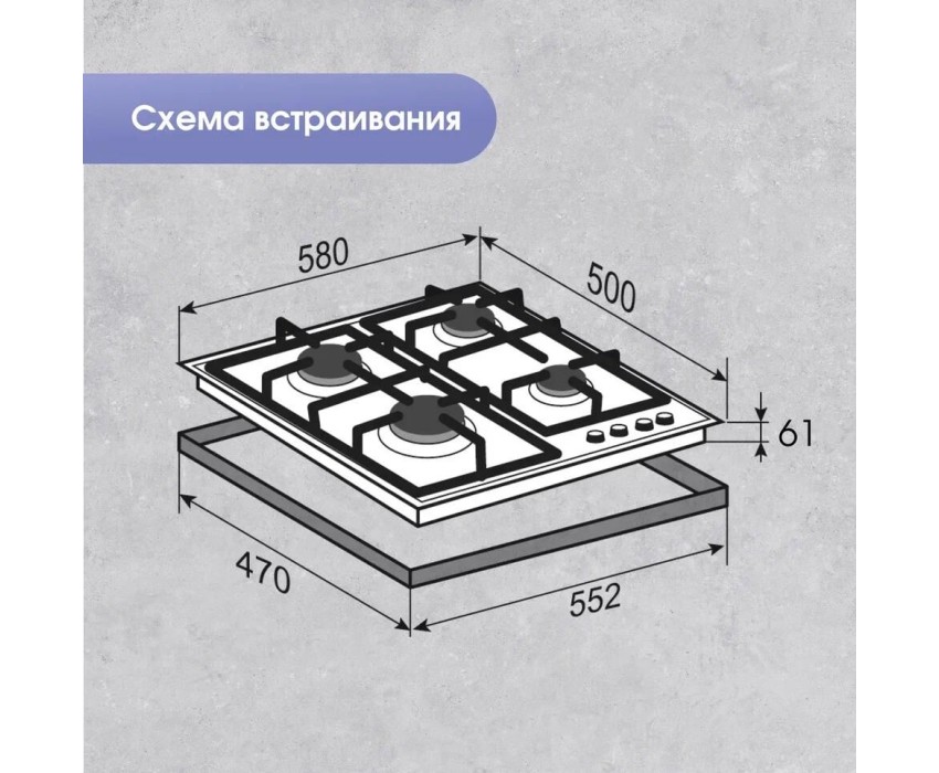 Общие параметры: Мощность горелок: • 1 горелка – 3400 Вт (WOK) • 2 горелки – 1880 Вт • 1 горелка – 900 Вт • Общая мощность – 8060 Вт • WOK-конфорка с тройным контуром пламени • Ступенчатая регулировка пламени • Электроподжиг на каждой конфорке • Газ-контроль на каждой конфорке