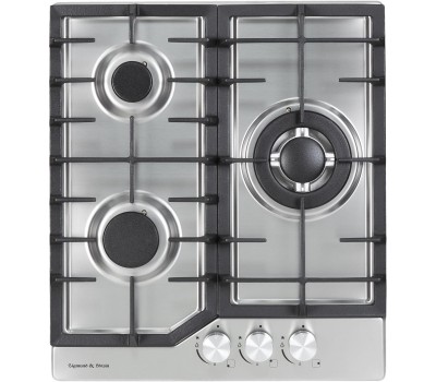 Газовая варочная панель. Цвет: нержавеющая сталь, Цвет фурнитуры: металлик, Количество конфорок: 3, Управление: фронтальное, Переключатели поворотные, Материал поверхности: металл, Материал решеток: чугун, Материал крышек горелок: чугун, Общая мощность: 6180 Вт, Газ-контроль, Электроподжиг, WOK-конфорка, Переходники для разных типов газа, Габариты (ШхГхВ): 455*510*59 мм, Ниша для встраивания (ШхГхВ): 425*480 мм, Длина шнура питания: 1220 мм, Вес нетто: 7,8 кг, Срок службы до 10 лет