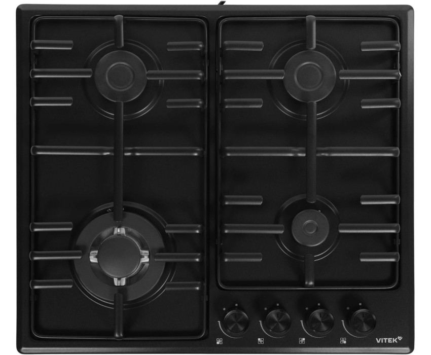 Газовая варочная поверхность, ширина 60 см, 4 газовые конфорки, общая мощность 8,0кВт, диаметр конфорок 50 мм, 2Х70мм и 80 мм, мощность малой конфорки 1 кВт, мощность средних конфорок 1,7 кВт, мощность большой двухконтурной WOK конфорки 3,6 кВт, фронтальные поворотные регуляторы, электроподжиг, эмалированная решетка, материал поверхности -матовая эмаль, цвет - черный. В комплекте переходники на сжиженый газ. Длина кабеля питания, 1,2 м