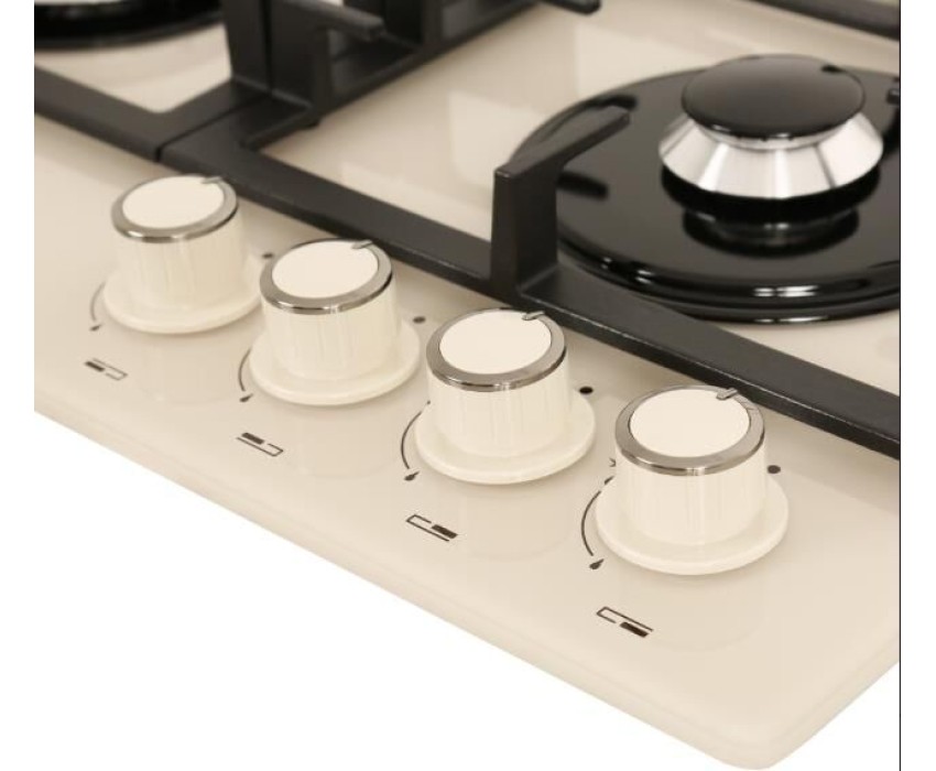 Размеры монтажного проема, ШхГ, см 55,4 х 48,6 * Ширина, см 60. Глубина, см 52,5. Высота, см 10 * Цвет модели Кремовый * Материал варочной поверхности Стекло * Материал решеток варочной поверхности Чугун * Двухзонная горелка варочной поверхности * Газ-контроль горелок стола * Электророзжиг горелок стола Розжиг встроен в ручки * "Фиксированное положение ""малое пламя"" *