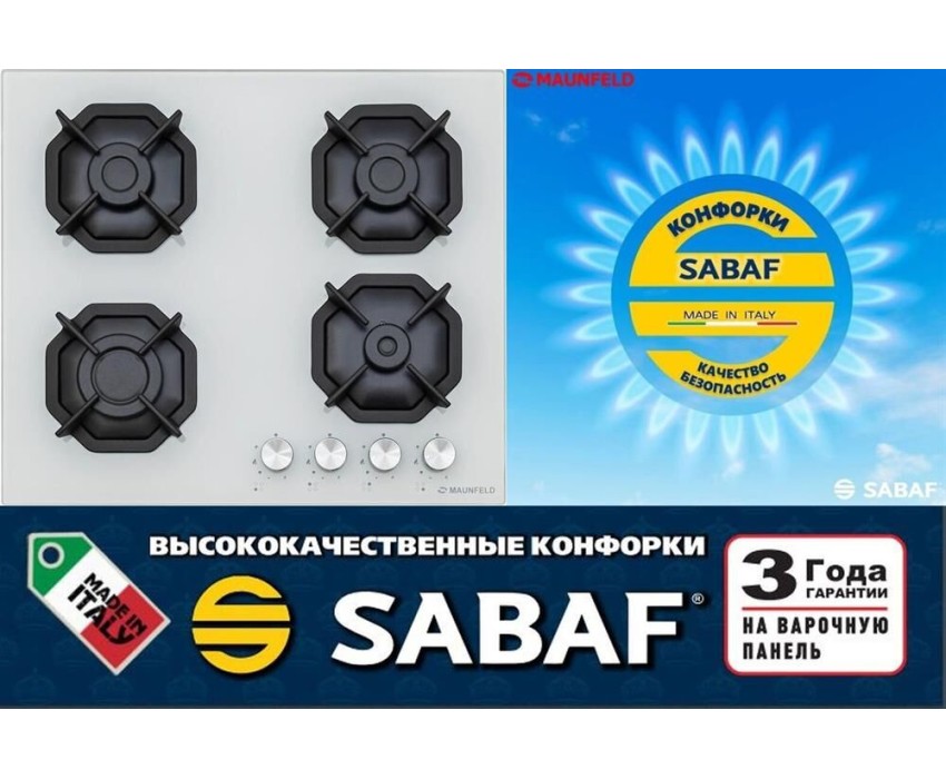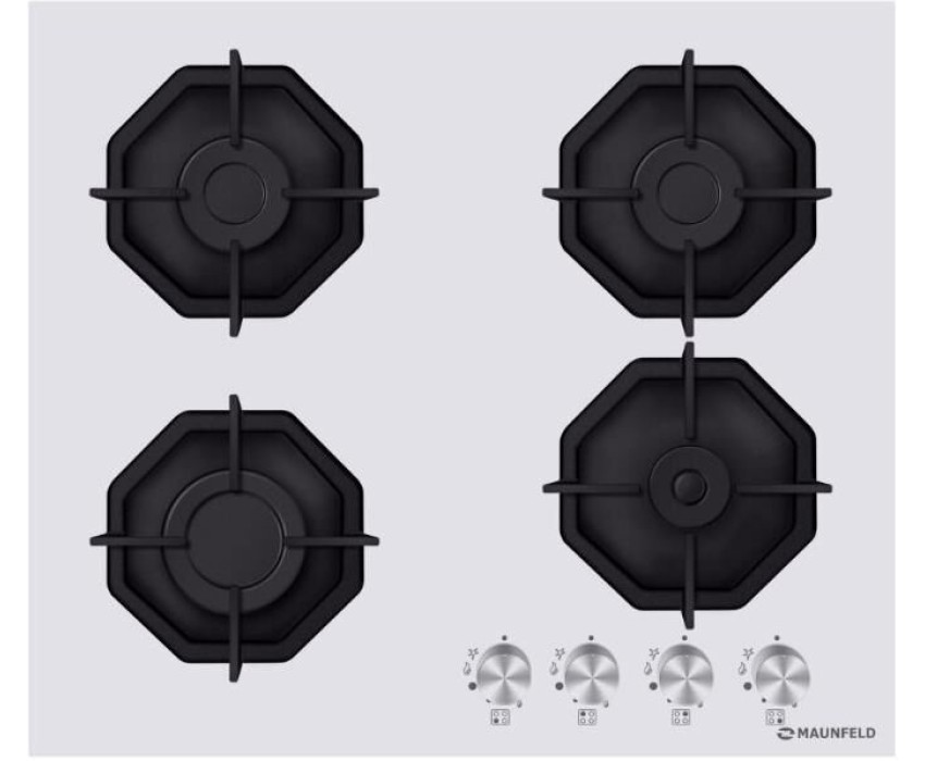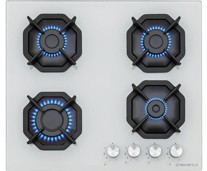 Варочная панель газовая MAUNFELD Газовая варочная панель EGHG.64.2CW/G, 4 конфорки, закаленное стекло, белый