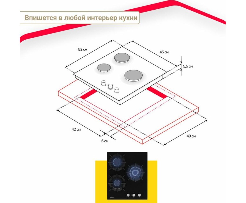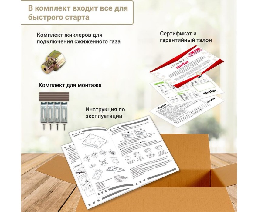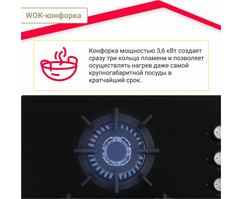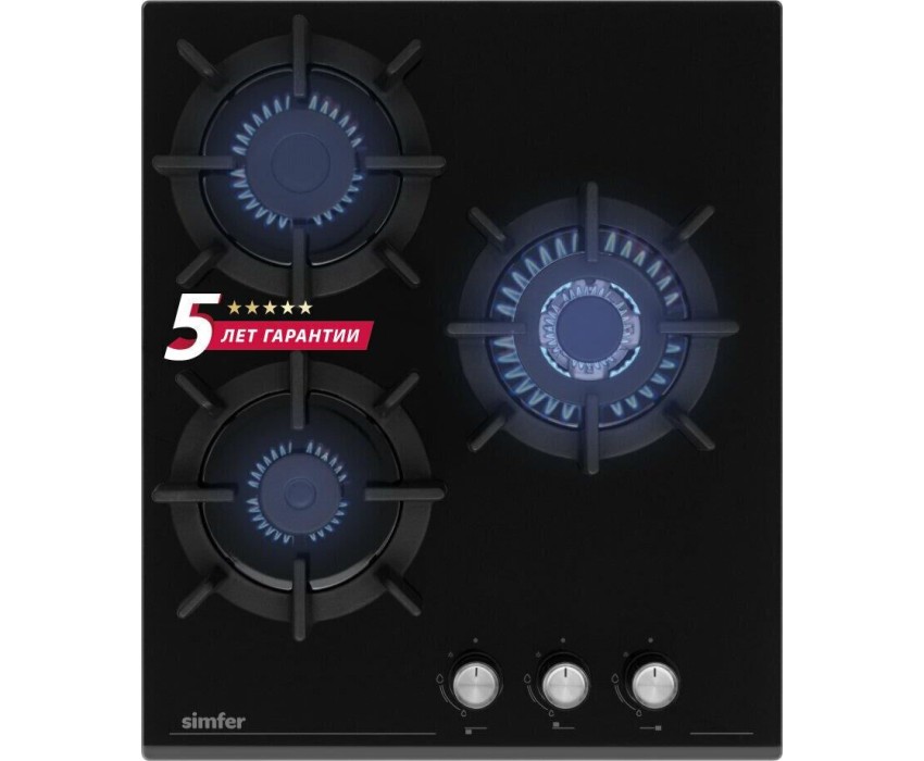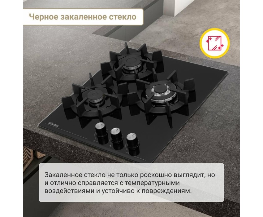 Газовая варочная панель Simfer H45N35B571 - модель, которая благодаря своим компактным размерам органично впишется в интерьер вашей кухни и сделает ежедневный процесс приготовления еды комфортным. Материал рабочей поверхности - жаростойкое закаленное стекло, которое имеет красивый зеркальный вид. На ней располагаются три конфорки - разные по диаметру и мощности пламени в них. Одна из конфорок имеет повышенную мощность до 3600 Вт (WOK-конфорка).